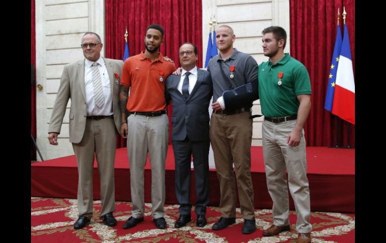 Internacional | Por frustrar el viernes pasado un atentado en un tren entre Amsterdam y París Francia concede la Legión de Honor a tres militares estadounidenses Por frustrar el viernes pasado un atentado en un tren entre Amsterdam y París Por: NTX 24 de agosto de 2015 - 07:33 hs PARÍS, FRANCIA (24/AGO/2015).- El presidente de Francia, Francois Hollande, concedió la Legión de Honor, la máxima distinción que concede el país galo, a tres militares estadounidenses que frustraron el viernes pasado un atentado en un tren entre Amsterdam y París. "Ustedes encarnan el bien", les dijo Hollande en el acto solemne de condecoración celebrado en el Palacio presidencial del Elíseo esta mañana, en el que también fue condecorado un ciudadano británico que ayudó a reducir al agresor, un joven marroquí de 26 años de edad. Hollande consideró que su acto "permitió salvar vidas" y les impuso la medalla de la Legión de Honor, el máximo reconocimiento que concede el Estado francés, creado por Napoleón. El presidente francés calificó de acto "heroico" la actuación de los tres estadounidenses, militares de profesión, elogió su "sangre fría y coraje" a la hora de reducir al agresor y dijo que Francia "les debía" esta condecoración. En las últimas horas el presidente galo platicó telefónicamente con su homólogo estadounidense, Barack Obama, con el que aseveró su "determinación a combatir juntos el terrorismo en todos sus frentes", precisaron fuentes oficiales francesas. El sábado el Ayuntamiento de la ciudad francesa de Arras, norte, en donde fue evacuado el tren atacado, condecoró también a los militares por su acción. Los tres amigos, que se encontraban de viaje por Europa, redujeron y ataron al agresor que de acuerdo a testimonios portaba un rifle automático kalasnikov, con el que disparó e hirió a tres personas, dos de ellas de gravedad. El presidente de los Estados Unidos, Barack Obama, también felicitó a los marines a los que calificó de "héroes", reportaron aquí medios locales. Los hechos ocurrieron el viernes durante el recorrido por Bélgica de un tren de alta velocidad "Thalys", que viajaba entre Amsterdam y París. Fuentes oficiales reportaron que el agresor, identificado como Ayoub El Khazzani, estaba fichado por terrorismo y habría viajado a Siria para ingresar en grupos yihadistas. El hombre viajaba con un rifle automático a Ak-47, que puede disparar ráfagas como si fuera una ametralladora, además de otras armas y cuchillas de afeitar en una maleta. La brigada antiterrorista se ha encargado de la investigación y el detenido fue trasladado el sábado a París en donde está siendo interrogado. Temas Europa Francia Estados Unidos Terrorismo Legión de honor François Hollande Lee También ¿Bad Bunny fuera del Super Bowl? Este sería el show alternativo Poza Rica, inundado por desbordamiento del río Cazones Bad Bunny permanece sentado durante "God Bless America" y enciende las redes Lista actualizada de selecciones que ya clasificaron al Mundial 2026 Recibe las últimas noticias en tu e-mail Todo lo que necesitas saber para comenzar tu día Registrarse implica aceptar los Términos y Condiciones