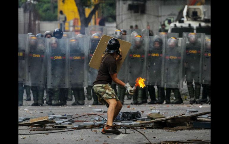CARACAS, VENEZUELA (26/JUL/2017).- Los fuertes enfrentamientos entre fuerzas de seguridad y manifestantes dejaron un muerto, durante la huelga de 48 horas convocada por la oposición venezolana para obligar al presidente Nicolás Maduro a suspender la elección de su Asamblea Constituyente.El gobierno de Maduro enfrentaba, además de las violentas protestas, una creciente presión internacional: Estados Unidos anunció sanciones contra 13 de sus funcionarios, bajo la advertencia de que quien se sume a la Constituyente quedará "expuesto a potenciales sanciones".Entre los sancionados está la presidenta del Consejo Nacional Electoral, Tibisay Lucena, y varios candidatos e impulsores de la Constituyente, acusados por Washington de "quebrantar la democracia".A cuatro días de la votación, la convulsión en las calles era mayor: Militares y policías lanzaban andanadas de perdigones y bombas lacrimógenas contra manifestantes, muchos encapuchados, que los enfrentaban con piedras y cócteles molotov Caracas y otras ciudades del país.En Ejido, en el occidental estado Mérida, un hombre de 30 murió durante una manifestación, con lo que suman 104 muertes durante las protestas que iniciaron hace cuatro meses para exigir la salida de Maduro. Miles también resultaron heridos y cientos detenidos.La opositora Mesa de la Unidad Democrática (MUD) convocó para el viernes una gran marcha en Caracas y amenazó con "boicotear" la elección, el domingo, de los 545 asambleístas de la Constituyente, con la que temen se instaure el comunismo en Venezuela. Fuerte rechazo La Constituyente es rechazada por un 70% según Datanálisis y ha sido fuertemente criticada, además de por Estados Unidos, por gobiernos latinoamericanos y europeos.En la lista de funcionarios sancionados este miércoles figuran también los ministros de Educación, Elías Jaua, y de Interior, Néstor Reverol, y el Defesor del Pueblo, Tarek William Saab.La jefa de la diplomacia europea, Federica Mogherini, expresó su "preocupación" por los informes sobre violaciones de los derechos y llamó a "poner fin a la violencia" a la vez que pidió respetar "la Constitución y el Estado de derecho".Hasta ahora Maduro no ha mostrado ninguna señal de retroceso. Más bien insiste en que la Constituyente "ya es un hecho" y traerá la paz y bonanza económica al país.La MUD no participará en la Constituyente alegando que no fue convocada en referendo y el sistema de elección fue diseñado para que el gobierno la controle y haga una Carta Magna a su medida, que garantice su permanencia en el poder.La fiscal general, Luisa Ortega, veterana chavista que rompió con Maduro, advirtió que la Constituyente será un "cheque en blanco" para el gobierno y llamó a los venezolanos a jugarse todo para detenerla.El gobierno puso a toda marcha la maquinaria del partido socialista. Según los analistas una alta abstención restaría legitimidad a la Constituyente, frente a los 7,6 millones de votos que según la MUD obtuvo en el plebiscito simbólico que hizo el 16 de julio contra esa iniciativa. "No más dictadura" En Bello Campo, este de Caracas, los choques fueron más duros y se mantenían al final de la tarde. Una lluvia de piedras, botella y otros objetos le caía desde los edificios de vivienda a un contingente de militares que se enfrentaba con los manifestantes en la calle.Con barricadas de escombros en las calles, comercios cerrados o confinados en sus casas, los opositores venezolanos cumplían la primera jornada de la huelga convocada contra la Constituyente. "No más dictadura", se leía en pancartas colocadas en los bloqueos."Ya basta de la apatía... cada vez estamos peor, con colas y escasez. Pienso estar las 48 horas" de huelga, declaró a la AFP María Auxiliadora, vecina del acomodado sector de Chacao, en el este, bastión opositor.En el centro de Caracas y en otras ciudades, los seguidores de Maduro se concentraban en apoyo en apoyo a Maduro y la Constituyente."La oposición está en una equivocación muy grave. Están en contra del pueblo, tratando de destrozarnos a todos", se quejó Reinaldo Alfonso, que abrió su peluquería en el popular barrio Catia, oeste de Caracas.Muchos venezolanos se abastecieron antes de alimentos, y miles cruzaron a pie la frontera con Colombia para aprovisionarse o salir del país, ante la incertidumbre de lo que pueda pasar.Maduro enfrenta también el malestar de muchos venezolanos por la profunda crisis económica en que cayó el país, donde la comida y las medicinas escasean y los precios suben todas las semanas.La patronal Fedecámaras y las principales centrales obreras apoyan la huelga. Pero la vital industria petrolera, operaba en "completa normalidad", según Eulogio del Pino, presidente de estatal PDVSA.Muchas empresas extranjeras han salido del país. La aerolínea Avianca anunció este miércoles la suspensión de vuelos de Caracas a Bogotá y Lima, como ya lo han hecho muchas otras.