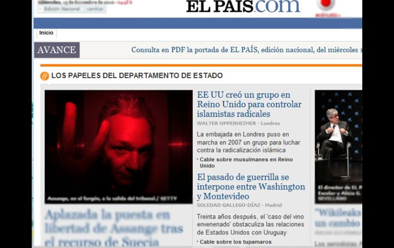 Internacional | Los efectivos de la corporación no podrán acceder a los sitios web Fuerza Aérea de EU bloquea acceso a sitios que publican las filtraciones The New York Times es uno de los periódicos bloqueados, junto a The Guardian, Le Monde, Der Spiegel y El País Por: EFE 14 de diciembre de 2010 - 20:30 hs El portal de El País es uno de los que ha publicado los cables diplomáticos filtrados. ESPECIAL / WASHINGTON, ESTADOS UNIDOS (14/DIC/2010).- La Fuerza Aérea de EU ha bloqueado el acceso de sus ordenadores a las páginas de internet de los medios que publican los cables diplomáticos filtrados por la organización WikiLeaks. Según ha indicado hoy una portavoz de la Fuerza Aérea, la teniente coronel Brenda Campbell, citada por el diario The New York Times, "se bloquearán los sitios de los medios de comunicación si cuelgan documentos clasificados procedentes de la página de WikiLeaks". "Es similar a cómo bloquearíamos cualquier otra página que colgara información clasificada", indicó la portavoz. The New York Times es uno de los periódicos bloqueados, junto a The Guardian, Le Monde, Der Spiegel y El País, los medios que han publicado los cables diplomáticos. Según indicó Campbell, sólo se bloquearán las páginas que cuelguen los documentos completos, no aquellas que divulguen extractos. La prohibición de acceder a estas páginas no se extiende a los ordenadores personales de los soldados de la Fuerza Aérea. Ni el Ejército, ni la Armada ni la Infantería de Marina han tomado medidas similares en EU. En parte, según portavoces de estas ramas de las Fuerzas Armadas, se debe a que la Casa Blanca ya ha advertido, el pasado día 3, que ningún funcionario, sea civil o militar, está autorizado para leer información clasificada si no ha recibido permiso, aunque se haya filtrado a los medios de comunicación. Un aviso enviado por la Oficina de Administración y Presupuesto de la Casa Blanca ese día señala que "la información clasificada, se haya divulgado o no a los medios o en sitios de internet públicos, sigue estando clasificada y como tal deben tratarla los funcionarios y contratistas federales, hasta que las autoridades adecuadas la desclasifiquen". Temas Norte América Estados Unidos Ejército de Estados Unidos WikiLeaks Lee También ¿Recibiste correo de rechazo de FIFA? Aquí te decimos cuándo es la siguiente venta Trump se reunirá con Putin para negociar fin de la guerra en Ucrania Trump construirá un arco del triunfo en Washington Ascienden a 70 los muertos por las lluvias de los últimos días Recibe las últimas noticias en tu e-mail Todo lo que necesitas saber para comenzar tu día Registrarse implica aceptar los Términos y Condiciones