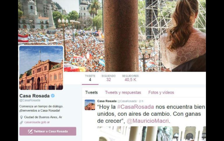 Internacional | Luego de que negaran el control del antiguo perfil al equipo de Mauricio Macri Gobierno argentino estrena nueva cuenta de Twitter Luego de la polémica por negar el control del antiguo perfil al equipo de Mauricio Macri Por: EFE 22 de diciembre de 2015 - 11:50 hs ''Comienza un tiempo de diálogo. Abrimos las puertas. ¡Bienvenidos a #CasaRosada!'', dice. TWITTER / @CasaRosada BUENOS AIRES, ARGENTINA (22/DIC/2015).- La Casa de Gobierno argentino estrenó hoy la cuenta oficial @CasaRosada en la red social Twitter después de que los gestores del antiguo perfil se negasen a ceder el control al equipo del nuevo presidente, Mauricio Macri. La nueva cuenta dio la bienvenida a sus seguidores con un tuit que reza: "Comienza un tiempo de diálogo. Abrimos las puertas. ¡Bienvenidos a #CasaRosada!", y un video con imágenes de la asunción de Macri, el pasado 10 de diciembre, que acompaña al texto. En sus primeras horas, la cuenta sumó cerca de 25 mil seguidores, mientras que @CasaRosadaAR, el antiguo perfil, todavía conserva más de 320 mil. Días antes de que Macri sucediera a Cristina Fernández en la Presidencia de Argentina, el pasado día 10, los gestores de la entonces cuenta oficial la rebautizaron como "Twitter de las Presidencias de Néstor y Cristina - 25 de mayo de 2003 al 10 de diciembre de 2015" y anunciaron que dejaría de ser oficial tras el relevo presidencial. Ante la polémica generada, Twitter retiró la verificación de ese perfil y ahora pasó a dársela a la nueva cuenta del Gobierno de Macri. Temas América Latina Argentina Twitter Mauricio Macri Lee También Argentina se burla de la Selección Mexicana con intro del Chavo del 8 (VIDEO) Chivas y América empatan en partido amistoso Nos quedamos con sensaciones cortas: Eduardo Arce 'Chicharito' marca su primer gol al América en partido amistoso Recibe las últimas noticias en tu e-mail Todo lo que necesitas saber para comenzar tu día Registrarse implica aceptar los Términos y Condiciones
