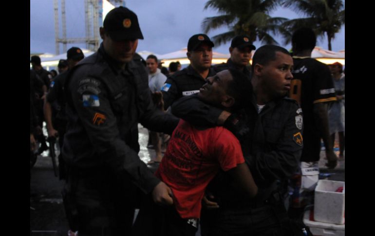 Internacional | Numerosos agentes de policía trataron de contener las carreras Goleada a Brasil genera estampida en Copacabana Numerosos agentes de policía trataron de contener las carreras Por: AP 8 de julio de 2014 - 16:14 hs Un hombre es detenido en el FanFest en Río de Janeiro. AFP / RIO DE JANEIRO, BRASIL (08/JUL/2014).- La goleada de Alemania encajada a Brasil generó el martes una enorme tensión en la playa de Copacabana en Río de Janeiro, donde decenas de miles de hinchas seguían en directo las semifinales de la Copa del Mundo en el FanFest. Después del quinto gol alemán en el primer tiempo, centenares de personas empezaron a correr desde la playa hacia las calles en una estampida que generó mucha tensión y pánico entre los brasileños que seguían el encuentro. Los numerosos agentes de policía trataron de contener las carreras, cuyo origen no estaba inmediatamente claro. Decenas de miles de seguidores volvieron a llenar el FanFest de Copacabana para seguir a la selección, aunque poco antes de empezar el partido un fuerte aguacero provocó que muchos abandonaran el recinto y la playa. Los goles alemanes enfriaron por completo el ambiente que ya había empapado el agua anteriormente como si fuera un mal presagio. Muchos seguidores lloraban y abandonaban resignados la zona. Temas América Latina Brasil Selección de Brasil Selección de Alemania Mundial Brasil 2014 Recibe las últimas noticias en tu e-mail Todo lo que necesitas saber para comenzar tu día Registrarse implica aceptar los Términos y Condiciones