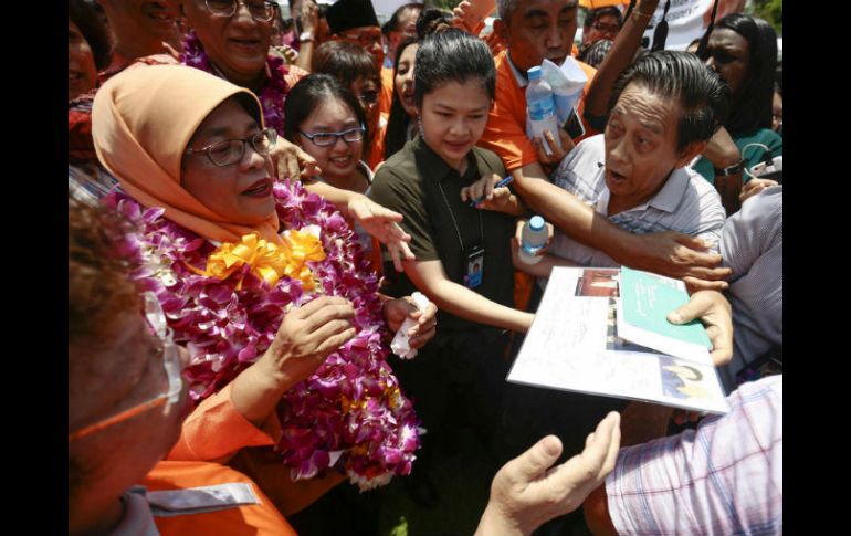 BANGKOK, TAILANDIA (13/SEP/2017).- La musulmana Halimah Yacob se convirtió hoy en la primera presidenta de Singapur, al ser la única candidata que superó todos los requisitos para las previstas elecciones a la jefatura del Estado.Yacob, de 63 años y etnia malaya, jurará el puesto mañana, en una ceremonia auspiciada en el Palacio presidencial de Istana, apuntó en la Oficina del primer ministro, Lee Hsien Loong, en un comunicado."Necesitamos a todos los singapureses unidos (...) No hemos alcanzado todavía nuestro máximo potencial (como país). Lo mejor está por llegar (...) Pido que nos centremos en nuestras similitudes y no en las diferencias", declaró la nueva presidenta tras hacerse efectivo su nombramiento.Yacob, acompañada por su marido y centenares de seguidores, pidió "unidad", en un discurso en inglés y malayo.El Legislativo singapurés aprobó en 2016 una reforma de la Constitución por la cual los comicios presidenciales quedan reservados a una de las etnias de la multicultural ciudad-estado si ningún candidato de este grupo ha albergado el sillón en los últimos 30 años."Yo soy la presidenta de todos", apuntó Yacob, cuyo puesto tiene carácter más representativo que ejecutivo.Yacob nació en 1954 en Singapur hija de un musulmán de origen indio y de madre malaya.Casada y madre de cinco hijos, se inició en política con el Partido de Acción Popular (PAP), que gobierna el país desde 1959, y entró en el Parlamento en 2001.Consiguió su primera cartera en 2011, como ministra Deportes, Juventud y Desarrollo Comunitario, y dos años después ocupó la presidencia del Parlamento.El mes pasado, renunció a la presidencia del Legislativo y se dio de baja en el PAP para poder concurrir a las elecciones presidenciales.