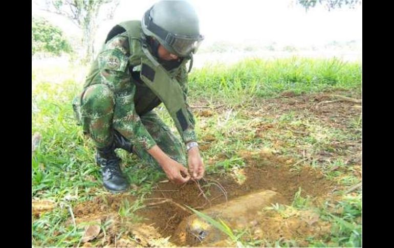 Internacional | Fueron encontrados 150 detonadores eléctricos Hallan unas 350 minas antipersona escondidas por FARC en noroeste de Colombia Decomisan minas antipersona y elementos para elaborar bombas en un escondite de la guerrilla de las FARC Por: EFE 14 de septiembre de 2010 - 16:34 hs El hallazgo se produjo por la policía colombiana en las montañas de Sonsón. ESPECIAL / BOGOTÁ, COLOMBIA (14/SEP/2010).- La Policía colombiana decomisó unas 350 minas antipersona y otros elementos para elaborar bombas en un escondite de la guerrilla de las FARC en el noroeste del país, informaron hoy fuentes del organismo de seguridad en Bogotá. El hallazgo se produjo en Morro Viejo, paraje boscoso en las montañas de Sonsón, localidad del departamento de Antioquia, precisó la Policía Nacional en un comunicado. La fuente indicó que en el lugar fueron encontrados tres morteros de fabricación artesanal, 150 detonadores eléctricos e ineléctricos, 50 metros de cordón detonante, 30 metros de mecha lenta y una libra de pentolita (explosivo de alto poder), además de las 350 minas. El material de guerra pertenecía al noveno frente de las Fuerzas Armadas Revolucionarias de Colombia ( FARC), agregó la policía, que no informó de detenciones. "El material de guerra fue destruido en el lugar de forma controlada por personal experto antiexplosivos", según la nota. Temas FARC Colombia Decomiso Lee También Selección Mexicana | James Rodríguez sobre el Tricolor: "Hablan mucho" Analistas califican la derrota de México: "el resultado más desalentador del año" Zague aseguró que "no existe calidad" en el futbol mexicano Hay jugadores que no estuvieron a la altura: Javier Aguirre Recibe las últimas noticias en tu e-mail Todo lo que necesitas saber para comenzar tu día Registrarse implica aceptar los Términos y Condiciones