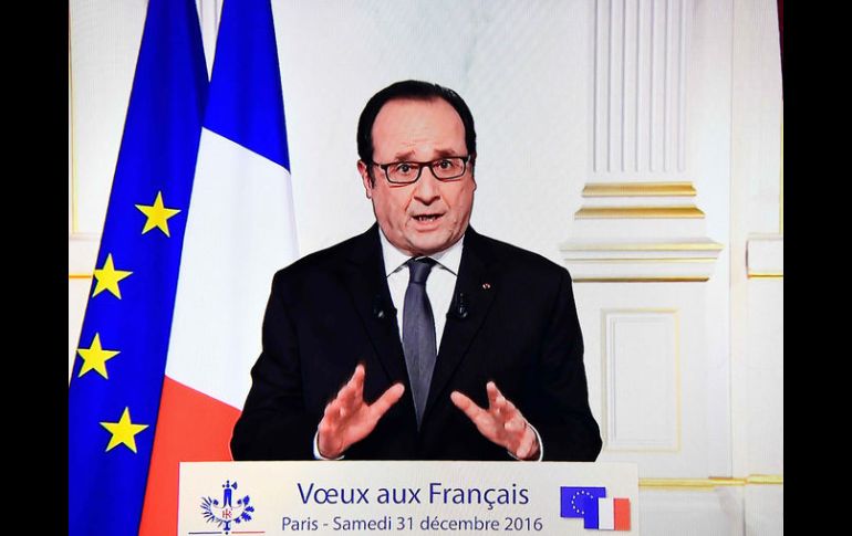 PARÍS, FRANCIA (31/DIC/2016).- El presidente francés Francois Hollande desafió al mandatario electo de Estados Unidos, Donald Trump, al advertir que defenderá la entrada en vigor del Acuerdo mundial de París sobre la lucha contra el cambio climático."Francia no dejará a nadie ni a ningún Estado, aunque sea el más grande, poner en riesgo este logro de primer orden de la comunidad internacional", declaró Hollande en referencia a Trump, en su discurso de felicitación de Año Nuevo a la nación, el cual fue transmitido por televisión.Durante su campaña electoral Trump amenazó con "anular" el acuerdo alcanzado a finales de 2015 en París por 195 países, incluido Estados Unidos, durante la Cumbre del Clima de Naciones Unidas COP21.Hollande también consideró como un "revés" de este año la elección de Trump como presidente de Estados Unidos y la salida de Reino Unido de la Unión Europea (UE), conocida como Brexit, decidida en un referéndum a mediados de año."Hay periodos en la Historia en los que todo puede bascular. Vivimos en uno", dijo Hollande, tras mencionar al "Brexit y a las elecciones en Estados Unidos", y a la situación de "Europa y de la paz" en el mundo.El jefe de Estado galo, que terminará su primer y único mandato dentro de cuatro meses, afirmó que en este momento el mundo vive en "un clima de guerra fría".Durante su mensaje, de 10 minutos de duración, pronunciado desde un salón del Palacio presidencial del Elíseo, Hollande se refirió también a los atentados yihadistas que sufrió este año Francia y advirtió que el país "no terminó con la plaga del terrorismo"."Habrá que continuar combatiéndolos tanto en el exterior como en el interior (...) de esta lucha contra la barbarie nuestra democracia saldrá victoriosa", confió Hollande, tras anunciar que el próximo lunes viajará a Irak para saludar a las tropas que combaten al Estado Islámico (EI) en aquel país.El presidente hizo un balance de sus cinco años de gobierno y dijo que su "prioridad" fue "recuperar la economía" para "lograr descender el número de desempleados"."Los resultados llegan más tarde de lo previsto, pero llegaron", aseveró Hollande.Además, mencionó los riesgos de que en Francia las elecciones presidenciales y legislativas de la primavera próxima sean ganadas por los candidatos conservadores o de la extrema derecha."Esta noche es la última que les presento mi felicitación. Es un momento de emoción y gravedad. Quiero compartirlo con todos los franceses", afirmó Hollande en el último mensaje por las fiestas decembrinas de su mandato.