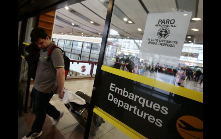 Internacional | Gran parte de vuelos internacionales y nacionales serán cancelados antes del mediodía Huelga en aeropuerto obliga a cancelar vuelos en Chile Gran parte de vuelos internacionales y nacionales serán cancelados antes del mediodía Por: AP 15 de septiembre de 2015 - 09:55 hs Turistas del país y extranjeros se encuentran varados en el aeropuerto internacional de Santiago por la cancelación de los vuelos. EFE / M. Ruiz SANTIAGO, CHILE (15/SEP/2015).- Una huelga de trabajadores de la aviación civil chilena ha forzado la cancelación de vuelos de salida. El paro de 24 horas por mejores condiciones de trabajo comenzó a primera hora del martes. El director de aviación civil dijo que la huelga afecta todos los aeropuertos del país y que mientras dure no habrá partida de vuelos. Maximiliano Larraechea añadió que la aerolínea nacional había reprogramado sus vuelos. Diez de los 16 vuelos internacionales y 26 de los 32 vuelos nacionales serían cancelados antes del mediodía. La medida de fuerza tiene lugar cuando se aproxima el 18 de septiembre, Día de la Independencia, un feriado que muchos chilenos aprovechan para viajar. Pero muchos turistas del país y extranjeros se encuentran varados en el aeropuerto internacional de Santiago. Temas América Latina Huelga Chile Aeropuertos Lee También ¿Quién ganará la FINAL entre Argentina y Marruecos? Esto dice la IA Venezuela Cruz Azul vs. América: La Máquina remonta y se queda con el clásico joven Cruz Azul vs América • Momentos Destacados • Jornada 13 • Apertura 2025 Recibe las últimas noticias en tu e-mail Todo lo que necesitas saber para comenzar tu día Registrarse implica aceptar los Términos y Condiciones