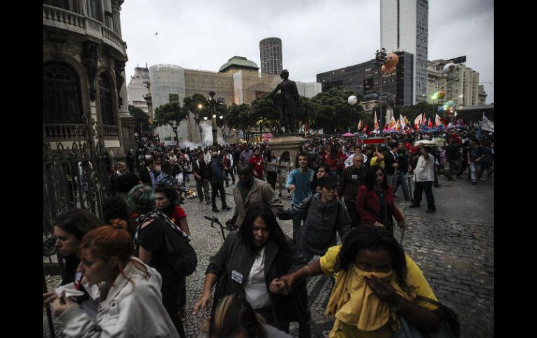 SAO PAULO, BRASIL (28/ABR/2017).- Enfrentamientos entre policías y manifestantes, paro de transportes y en las escuelas marcaban este viernes la huelga general convocada en Brasil contra las medidas de austeridad del gobierno de Michel Temer, en un país sumido en la recesión y con niveles récord de desempleo.Al comienzo de la tarde, cuando estaban convocadas las principales marchas, el centro de Rio se convirtió en un campo de batalla mientras los agentes dispersaban con gases lacrimógenos a unos dos mil manifestantes frente a la Asamblea Legislativa, constataron periodistas de AFPTV.Los enfrentamientos se prolongaban al caer la noche en torno a la plaza Cinelandia, rodeada por policías del cuerpo antimotines que dispersaban con gases a grupos que se congregaban en las calles aledañas.En la plaza, la multitud oía oradores, al grito de "¡Fora Temer!".Ya durante la mañana, la policía había intervenido contra activistas que bloqueaban calles de Sao Paulo y otras ciudades.Se trata, según la Central Única de Trabajadores (CUT), de la primera huelga general convocada en el país desde junio de 1996, contra las privatizaciones y la flexibilización de los derechos laborales impulsadas por el gobierno socialdemócrata de Fernando Henrique Cardoso.En esta ocasión, las denuncias apuntan en particular contra los proyectos de reforma del sistema de jubilaciones y, una vez más, de flexibilización de los contratos de trabajo.Ambas iniciativas están en votación en el Congreso como parte del programa del gobierno para enderezar las cuentas y sacar a Brasil de la peor recesión de su historia. Según datos oficiales publicados este viernes, el desempleo en la mayor economía latinoamericana alcanzó un nuevo nivel récord de 13.7%, con 14.2 millones de personas en busca de trabajo.Tanto para la CUT, ligada a la izquierda, como para Força Sindical (FS) -cuyo presidente es diputado de la base aliada del conservador Temer- la jornada fue un éxito. Según FS, casi 40 millones de brasileños adhirieron a la medida de fuerza."Es una clara demostración de que la gente decidió parar en protesta contra la retirada de derechos que sufre por parte del gobierno", afirmó el expresidente Luiz Inácio Lula da Silva (2003-2010), ícono de la izquierda, en una entrevista con la radio Brasil Atual."Es una satisfacción saber que el pueblo brasileño está tomando conciencia", agregó el exlíder sindical, favorito en las encuestas de intenciones de voto para 2018 pese a que enfrenta cinco acciones judiciales, en su mayoría por el escándalo de sobornos en Petrobras que salpica a decenas de dirigentes tanto oficialistas como opositores.Para el gobierno, en cambio, la paralización fue un fracaso: "Están impidiendo que las personas lleguen a sus lugares de trabajo. En un primer análisis, eso evidencia que es una huelga que no existe. Es más una huelga de sindicatos perturbados por las decisiones del Congreso", dijo el ministro de Justicia, Osmar Serraglio, a la radio CBN.Sao PauloEn Sao Paulo, motor económico y distrito más poblado del país, se produjeron algunos enfrentamientos entre manifestantes que obstruían arterias de la ciudad y la policía, generando congestionamientos en el tránsito.Después del mediodía, los trenes y el metro comenzaron a funcionar parcialmente, aunque los autobuses seguían paralizados.Los comercios registraban un acatamiento parcial al cese de actividades, señaló un reportero de la AFP."Ya no podemos quedarnos callados, con un gobierno que no es legítimo, que no fue elegido, que promueve una desarticulación de los derechos de los trabajadores y del pueblo brasileño", dijo Ricardo Jacques, un empleado bancario paulistano.Metalúrgicos, petroleros, personal de los hospitales y de los correos también adhirieron a la protesta. Unos 60 mil obreros no acudieron a sus puestos en las fábricas del cinturón industrial de Sao Paulo, paralizando montadoras como las de Mercedes o Ford, informó el Sindicato de Metalúrgicos local.Temer, que tiene un apoyo de la población de apenas un 10%, reemplazó en 2016 a la presidenta Dilma Rousseff, del izquierdista Partido de los Trabajadores (PT), destituida por el Congreso bajo la acusación de manipular las cuentas públicas.AeropuertosEl aeropuerto doméstico de Sao Paulo registró 13 vuelos cancelados y 23 atrasos de un total de 124 previstos, pero la empresa que lo administra no supo precisar si los trastornos tienen relación directa con la huelga.En la terminal internacional paulista de Guarulhos, de las 190 llegadas y 175 partidas programadas se registraron 24 despegues atrasados y siete cancelaciones hasta las 16:00 locales, según un comunicado que divulgó la terminal. En Brasilia, la huelga afectó por la mañana a 32 de los 182 vuelos previstos y ocho debieron cancelarse.La capital del país estaba sin servicio de autobuses y metro y con vallas que cercaban a los edificios del Congreso y la Presidencia, parte de un vasto operativo policial para impedir invasiones durante las protestas, seguidas muy de cerca por el gobierno de Temer.