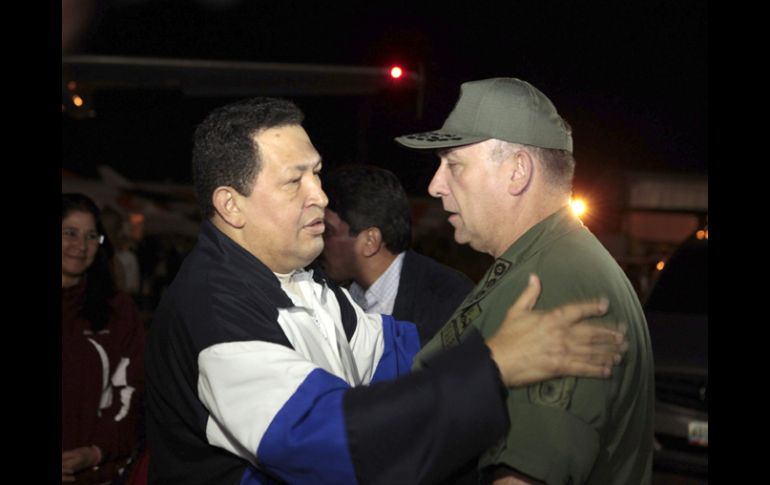 Internacional | Se sometía a un tratamiento médico en La Habana, Cuba Hugo Chávez retorna a Venezuela En una breve ceremonia transmitida por la estatal Venezolana de Televisión, el mandatario señala que estaba feliz de volver a su país Por: NTX 7 de diciembre de 2012 - 07:23 hs Hugo Chávez, saluda al ministro de Defensa, Diego Molero Bellavia (d), a su llegada a Venezuela. EFE / LA HABANA, CUBA (07/DIC/2012).- El presidente de Venezuela, Hugo Chávez, retornó esta madrugada a Caracas, tras someterse en La Habana, Cuba, a un tratamiento de oxigenación hiperbárica contra el cáncer que se le descubrió el año pasado, y se declaró muy alegre y feliz. Chávez, quien arribó alrededor de las 3:00 horas locales (07:30 GMT) fue recibido en el aeropuerto de Maiquetía por parte de su gabinete, a quienes en son de broma preguntó: "bueno, dónde es la pachanga". En una breve ceremonia transmitida por la estatal Venezolana de Televisión, el mandatario señaló que "hoy se cumplen dos meses del triunfo de octubre. Estamos a ocho días de la victoria que viene". "20 años atrás no teníamos patria, aquí no había pueblo. Pueblo no es sólo la sumatoria de gente, para que exista un pueblo tiene que haber una multitud. Además que tengan un proyecto común. Aquí había un reguero de gente", destacó el jefe de Estado. Temas América Latina Venezuela Hugo Chávez Cuba Lee También Premio Nobel de la Paz es para María Corina Machado, líder opositora de Venezuela Chivas viaja con ‘Chicharito’ y Robinho al amistoso ante América en Estados Unidos Estas son las bajas de Chivas para el próximo Clásico Nacional Chivas y América calientan en redes el Clásico Nacional de la Fecha FIFA Recibe las últimas noticias en tu e-mail Todo lo que necesitas saber para comenzar tu día Registrarse implica aceptar los Términos y Condiciones