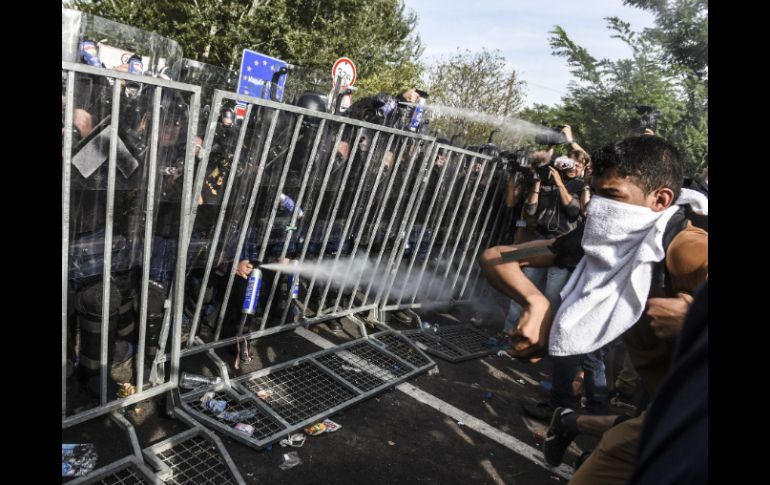 Internacional | Los migrantes se enfrentaron a las autoridades con piedras y botellas Hungría ahuyenta a migrantes con gas pimienta en frontera con Serbia Los migrantes se enfrentaron a las autoridades con piedras y botellas en Röszke Por: AFP 16 de septiembre de 2015 - 09:05 hs RÖSZKE, HUNGRÍA (16/SEP/2015).- La policía húngara utilizó gases lacrimógenos en Röszke, en la frontera con Serbia, después de que migrantes les arrojaran piedras y botellas desde el otro lado de la alambrada que separa a ambos países. Varios centenares de migrantes arremetieron contra las fuerzas del orden, lanzándoles piedras y botellas, antes de que éstas les lanzaran gases lacrimógenos. Además, la policía húngara también hizo uso de cañones de agua contra los migrantes. En un comunicado, la policía húngara indicó que un grupo de migrantes consiguió en un primer momento "franquear el pórtico de cierre de la frontera", en el puesto llamado Röszke II. "La puerta se ha sustituido por varias filas de policías. La policía protege las fronteras de Hungría y de la UE respetando las leyes y el principio de proporcionalidad", subraya el texto. Unos 500 migrantes se encontraban en ese lugar a media tarde, de los que 300 participaron en los altercados, gritando "Freedom, freedom!" (¡Libertad, libertad!) y apuntando a los policías húngaros con objetos. Niños y adultos lloraban por culpa del gas, y los policías serbios, que observaban la escena sin intervenir, también tuvieron que protegerse del gas con pañuelos. Dos helicópteros húngaros, uno del ejército y otro de la policía, sobrevolaban el lugar. Se trata del primer incidente de este tipo constatado desde que Budapest cerrara completamente la frontera con Serbia para evitar la entrada de refugiados, el lunes por la noche. Temas Europa Serbia Hungría Refugiados Recibe las últimas noticias en tu e-mail Todo lo que necesitas saber para comenzar tu día Registrarse implica aceptar los Términos y Condiciones
