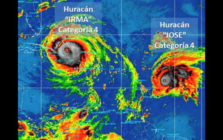 MIAMI, ESTADOS UNIDOS (08/SEP/2017).- El huracán ''José'', que se encuentra en el Atlántico, a 700 kilómetros al este de las Antillas Menores, alcanzó la categoría 4 con vientos de 240 kilómetros por hora, indicó el viernes el Centro estadounidense de huracanes (NHC).''José'', que se sitúa a un escalón de la categoría máxima para este tipo de fenómeno, avanza a 30 kilómetros por en dirección oeste noroeste, precisó el NHC, desplazándose por la ruta del huracán ''Irma'', una inmensa depresión actualmente de categoría 4, que ha devastado varias islas del Caribe y amenaza Cuba, Bahamas y gran parte de Florida.Más al oeste, el huracán ''Katia'' continúa fortaleciéndose, a categoría 2, orientándose hacia el suroeste, a 200 kilómetros de Veracruz, donde tocaría tierra temprano el sábado, según el NHC.