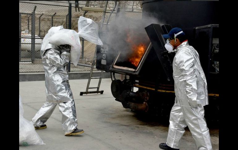 Internacional | Las sustancias son incautadas en operaciones de inteligencia policial en todo el año Incineran más de cinco toneladas de drogas en Perú Las sustancias son incautadas en operaciones de inteligencia policial a lo largo del año Por: EFE 23 de diciembre de 2014 - 13:25 hs LIMA, PERÚ (23/DIC/2014).- Más de cinco toneladas de drogas incautadas en diferentes operativos durante este año fueron incineradas hoy en la sede de la Dirección de Operaciones Especiales (Diroes) de la Policía Nacional de Perú, informó el Ministerio del Interior. Entre las drogas destruidas estuvieron dos mil 70 kilos de clorhidrato de cocaína con mezcla, mil 407 kilos de clorhidrato de cocaína pura, mil 252 kilos de pasta base de cocaína, 338 kilos de mariguana y 53.5 kilos de base de cocaína con mezcla. Antes de la quema de la droga se verificaron las cantidades y se realizó un análisis químico, tras lo cual fue enviada al incinerador, señaló la información oficial. El jefe de la Dirección Antidrogas (Dirandro), Vicente Romero, destacó que los más de cinco mil kilos de droga fueron incautados en diversas operaciones de inteligencia policial. Como parte de la política de lucha contra las drogas, el Gobierno de Perú anunció la semana pasada que durante 2014 logró erradicar 31 mil 205 hectáreas de hoja de coca ilegal, la materia prima de la cocaína, una cifra que consideró un ''récord histórico'' en la lucha contra el narcotráfico en el país. El ministro del Interior, Daniel Urresti, señaló que de esa manera se evitó la producción de 240 toneladas de droga valoradas en Estados Unidos en más de cinco mil millones de dólares y en Europa en más de diez mil millones de dólares. Hasta el 15 de diciembre de este año se ejecutaron 996 operaciones de erradicación, por vía terrestre, aérea y fluvial, y se ubicó y desactivó 103 laboratorios ilícitos de drogas encontrados en las mismas parcelas de coca. Temas América Latina Narcotráfico Perú Drogas Recibe las últimas noticias en tu e-mail Todo lo que necesitas saber para comenzar tu día Registrarse implica aceptar los Términos y Condiciones