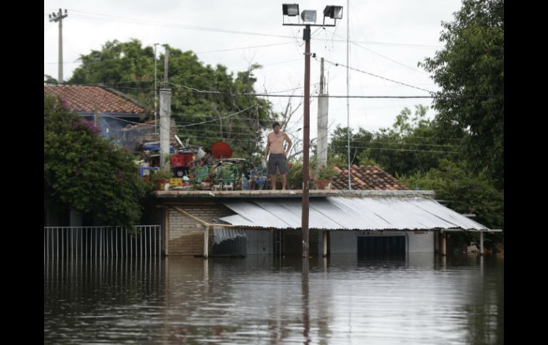 "El río (Paraguay) está cerca de los ocho metros. Ni los peores pronósticos indicaban que en diciembre podíamos alcanzar esos niveles en el río Paraguay", dijo a periodistas Julián Báez, titular de la Dirección de Meteorología e Hidrología.El pico de nueve metros de crecida del río data de 1983, cuando las aguas anegaron el puerto de Asunción e inundaron las principales calles céntricas. El Gobierno emplazó a los siete mil pobladores de la ciudad de Alberdi, 130 km al sur, a abandonar la población por fisuras en el muro de contención que podría acarrear una catástrofe.Si continúan las lluvias en el norte, en la zona del Pantanal, la crecida puede llegar a los niveles de 1983, según Báez.Las inundaciones van acompañadas de torrenciales lluvias que este fin de semana dejaron como resultado cuatro muertos, aplastados por caída de árboles en la zona metropolitana de Asunción.Báez admitió que el río Paraguay bajó tres centímetros en la ribera de Asunción pese a las . Sin embargo, el pronóstico vaticina más precipitaciones los próximos cinco días.El técnico recordó que la máxima inundación hace 32 años tuvo como antecedentes torrenciales lluvias."Los pronósticos climáticos con que se cuentan están muy condicionados por el fenómeno de El Niño", remarcó Báez quien observó que las inundaciones se relacionan directamente con el exceso de lluvias."Hay todavía mucho caudal, aguas arriba, y todo eso tiene que drenar hacia Asunción", explicó Báez al diario Ultima Hora.El río Paraguay registró un aumento de siete centímetros en las últimas 24 horas, reportaron autoridades de hidrología.Además de Asunción, hay otros siete departamentos declarados en situación de emergencia debido al desborde de ríos y arroyos. Los expertos esperan la normalización del nivel del río en el mes de marzo.Las lluvias incesantes y consecuentes inundaciones por las crecidas de ríos limítrofes han dejado en los últimos días más de 170 mil evacuados en Paraguay, Argentina, Brasil y Uruguay.
