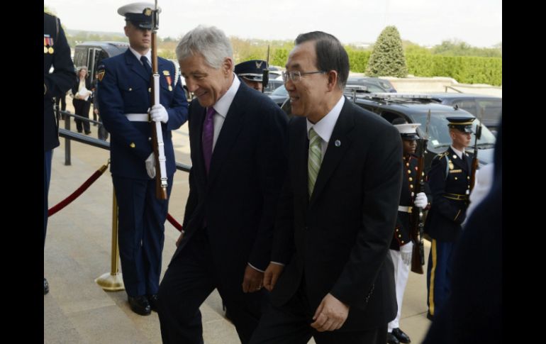 Internacional | Es la primera vez que un secretario general de la ONU asiste al Pentágono Ki-moon visita al Pentágono para hablar de Norcorea Es la primera vez que un secretario general de la ONU asiste al Pentágono Por: AFP 18 de abril de 2013 - 15:41 hs Imagen del arribo de Ki-moon al Pentágono, donde fue recibido por el secretario de Defensa. EFE / WASHINGTON, ESTADOS UNIDOS (18/ABR/2013).- El secretario general de la ONU, Ban Ki-moon, efectuó este jueves una visita sin precedentes al Pentágono, donde dialogó con funcionarios de la defensa estadounidense sobre las tensiones en la península coreana y las operaciones de mantenimiento de la paz de Naciones Unidas. Es la primera vez que un secretario general de la ONU asiste al Pentágono. Ban fue recibido por una guardia de honor antes de conversar por 30 minutos con el secretario de Defensa, Chuck Hagel, y el jefe del Estado Mayor Conjunto, el general Martin Dempsey. Las conversaciones se centraron en Corea del Norte y en las misiones de mantenimiento de la paz que la ONU podría llegar a desplegar en Mali, Somalia y Siria, indicó un responsable de Defensa bajo condición de anonimato. "Hubo mucha discusión sobre Corea del Norte" sobre los riesgos de "errores de juicio" y "cálculos incorrectos", dadas las tensiones actuales entre Pyongyang, Seúl y Washington. La visita de Ban llega en momentos en que Corea del Norte respondió por primera vez a una oferta de Estados Unidos para volver a la mesa de negociaciones, diciendo que accedería a iniciar conversaciones solo bajo ciertas condiciones previas, que incluyen la retirada de las sanciones de la ONU al país y el fin de los ejercicios militares conjuntos entre Estados Unidos y Corea del Sur. Según el funcionario estadounidense, Ban también discutió sobre la operación de mantenimiento de la paz que la ONU pretende desplegar en Malí y sobre "los intereses comunes de Estados Unidos y Naciones Unidas" en Somalia y Siria. El secretario general también expresó en el Pentágono sus condolencias tras el doble atentado en el maratón de Boston (Massachusetts, noreste) del lunes, en el que fallecieron tres personas y más de 180 resultaron heridas. Temas Norte América Estados Unidos Pentágono Ban Ki-moon Recibe las últimas noticias en tu e-mail Todo lo que necesitas saber para comenzar tu día Registrarse implica aceptar los Términos y Condiciones