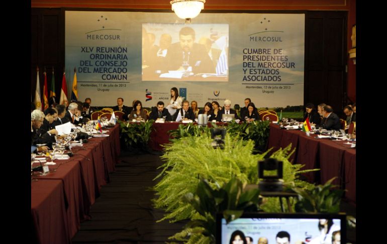 Internacional | La retención del vuelo de Evo Morales en Austria es uno de los temas a tratar La 45 Cumbre de Mercosur comienza en Uruguay La cita del bloque regional inició con una sesión en la que participaron los cancilleres de Uruguay, Luis Almagro; Argentina, Héctor Timerman; Brasil, Antonio Patriota, y Venezuela, Elías Jaua Por: NTX 11 de julio de 2013 - 13:46 hs BUENOS AIRES, ARGENTINA (11/JUL/2013).- La 45 Cumbre del Mercado Común del Sur (Mercosur) comenzó en Uruguay con denuncias por el maltrato de varios países europeos al presidente de Bolivia, Evo Morales, y el espionaje de Estados Unidos en América Latina. La cita del bloque regional inició este jueves en Montevideo con una sesión en la que participaron los cancilleres de Uruguay, Luis Almagro; Argentina, Héctor Timerman; Brasil, Antonio Patriota, y Venezuela, Elías Jaua. Al término del encuentro, Almagro explicó que uno de los principales temas del cónclave semestral del Mercosur será la retención que la semana pasada sufrió Morales en Austria, luego de que España, Italia, Portugal y Francia le negaran acceso a su espacio aéreo. El presidente boliviano venía de una gira por Rusia, y el pretexto para impedirle el paso fue el temor de que llevara escondido al espía estadunidense Edward Snowden, quien es buscado por la justicia de Estados Unidos. "Consideramos hasta ahora insuficientes las disculpas que han dado los países europeos en el caso del avión del presidente Evo Morales", afirmó Almagro. Por eso es que se espera que este viernes los presidentes de los países miembros del Mercosur emitan una enérgica condena hacia los países europeos por haber violado la soberanía de Bolivia. El canciller uruguayo también reveló que durante la reunión ministerial de este jueves se analizó el caso del espionaje de organismos de seguridad de Estados Unidos en Argentina, Brasil, Colombia, Ecuador, México y Venezuela. De hecho, en la declaración final del encuentro que firmarán este viernes los presidentes se incorporará la exigencia de explicaciones por parte del gobierno de Barack Obama. Por otra parte, Almagro confirmó que Paraguay regresará de manera automática al Mercosur el próximo 15 de agosto, una vez que tome posesión el presidente electo de ese país, Horacio Cartes Paraguay fue suspendido el año pasado del Mercosur, después de la acelerada destitución del entonces mandatario Fernando Lugo mediante un juicio político, lo que se consideró una violación a la "cláusula democrática" del bloque. Temas América Latina Uruguay Mercosur Recibe las últimas noticias en tu e-mail Todo lo que necesitas saber para comenzar tu día Registrarse implica aceptar los Términos y Condiciones
