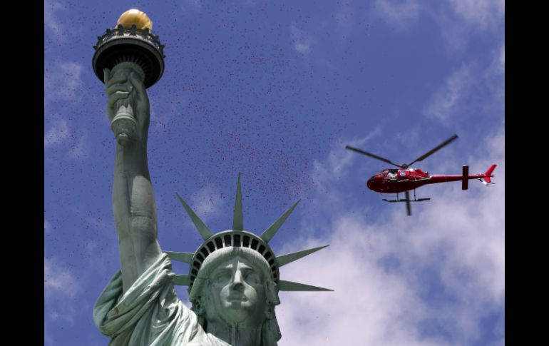 Internacional | El acto conmemoró el 70 aniversario del desembarco en Normandía, el Día D La Estatua de la Libertad recibe una lluvia de rosas El acto conmemoró el 70 aniversario del desembarco en Normandía, el Día D Por: EFE 6 de junio de 2014 - 19:18 hs Dos helicópteros dejaron caer un millón de pétalos de rosa sobre la Estatua de la Libertad de Nueva York. AP / NUEVA YORK, ESTADOS UNIDOS (06/JUN/2014).- Dos helicópteros dejaron caer hoy un millón de pétalos de rosas sobre la Estatua de la Libertad de Nueva York para festejar el 70 aniversario del desembarco en Normandía. El acto, preparado por la organización "The French Will Never Forget" (los franceses nunca olvidarán) con el apoyo de las autoridades galas, sirvió para expresar el agradecimiento de Francia a las tropas estadounidenses que participaron en la Segunda Guerra Mundial. Junto a la base de la estatua se colocaron dos grandes banderas, una francesa y otra estadounidense, mientras que una banda tocó los himnos de los dos países durante un recordatorio en el que participaron veteranos de guerra. El acto tuvo lugar en paralelo a las celebraciones principales del 70 aniversario del desembarco aliado que hoy acogió Francia y en las que participaron 19 jefes de Estado y de Gobierno, entre ellos el estadounidense Barack Obama. La Estatua de la Libertad, el lugar elegido en Nueva York, simboliza desde 1886 la amistad franco-estadounidense, pues fue un regalo de París para conmemorar el centenario de la declaración de independencia de Estados Unidos y las buenas relaciones entre los dos países. Temas Norte América Francia Estados Unidos Nueva York Segunda Guerra Mundial Recibe las últimas noticias en tu e-mail Todo lo que necesitas saber para comenzar tu día Registrarse implica aceptar los Términos y Condiciones