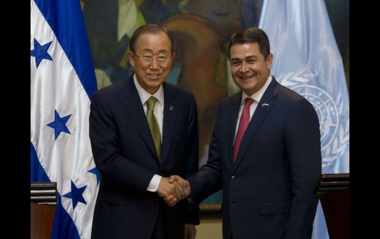 Internacional | Ban Ki-moon felicita a Hernández por sus esfuerzos en reducir los índices de homicidios La ONU abrirá oficina de Derechos Humanos en Honduras Ban Ki-moon felicita a Hernández por sus esfuerzos en reducir los índices de homicidios Por: NTX 14 de enero de 2015 - 17:54 hs Ban también se reunirá con miembros del Congreso y la Corte Suprema de Justicia de Honduras. EFE / G. Amador TEGUCIGALPA, HONDURAS (14/ENE/2015).- El presidente de Honduras, Juan Orlando Hernández, anunció que se abrirá en su país una oficina del Alto Comisionado de Derechos Humanos de Naciones Unidas ( ONU), tras reunirse aquí con el dirigente del organismo, Ban Ki-moon. "Hoy he escuchado una muy buena noticia (...) gracias al apoyo de Naciones Unidas, de nuestra embajadora (en la ONU) Lizzy Flores, tenemos el financiamiento para que esa oficina próximamente esté abierta aquí", indicó Hernández en rueda de prensa conjunta con Ban. El mandatario hondureño calificó como productiva la reunión que mantuvo con el secretario general de la ONU, a quien explicó su plan de gobierno y los proyectos que actualmente están en marcha en Honduras. Ban, por su parte, felicitó al presidente hondureño por sus esfuerzos para reducir los índices de homicidios en este país centroamericano. "Estoy muy feliz de saber que la tasa de homicidios ha caído significativamente en los últimos tres años de 86 homicidios por cada 100 mil personas a 66", destacó Ban, quien este miércoles inició una visita oficial de dos días a Honduras. Asimismo, el líder de la ONU hizo un llamado para "buscar la protección para los niños que cruzan la frontera tanto de Honduras como de Guatemala y El Salvador a través del apoyo de las organizaciones". En la reunión privada que mantuvieron Hernández y Ban abordaron además temas como la situación del Golfo de Fonseca, la Alianza para la Prosperidad, derechos humanos, la seguridad ciudadana y el combate al narcotráfico, el intercambio global y el terrorismo. Durante su estancia, el líder de la ONU tiene previsto además reunirse con miembros del Congreso y la Corte Suprema de Justicia de Honduras, así como con el comisionado de Derechos Humanos, Roberto Herrera, y representantes de grupos de la sociedad civil. Temas América Latina ONU Ban Ki-moon Honduras Recibe las últimas noticias en tu e-mail Todo lo que necesitas saber para comenzar tu día Registrarse implica aceptar los Términos y Condiciones