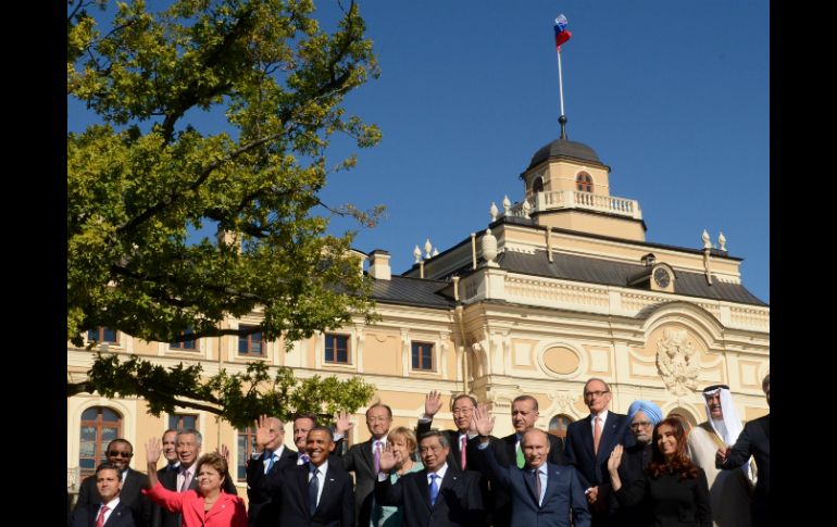 Internacional | Los desacuerdos entre naciones se demuestran protocolariamente La foto de 'familia' del G-20 es rápida Los desacuerdos entre naciones se demuestran protocolariamente Por: AP 6 de septiembre de 2013 - 08:33 hs Barack Obama (3i) y Vladimir Putin (2d) posan en San Petersburgo para la fotografía del recuerdo de la reunión del G-20. AFP / SAN PETERSBURGO, RUSIA (06/SEP/2013).- Los jefes de Estado y de Gobierno del G-20 despacharon rápidamente la foto de familia que puso fin a la Cumbre de San Petersburgo, marcada por la tensión entre Estados Unidos y Rusia sobre Siria. En el marco incomparable del palacio Constantino de la capital imperial rusa, iluminado por un intenso cielo azul, los mandatarios de las principales potencias mundiales llegaron en varios grupos para posar en la tradicional foto. El presidente estadounidense Barack Obama llegó con la canciller alemana Angela Merkel y besó a su homóloga brasileña Dilma Rousseff, con la que ha mantenido roces por las denuncias de espionaje de los servicios secretos norteamericanos. Los dos posaron juntos en la foto. Solo tres mujeres, Merkel, Rousseff y la presidenta argentina Cristina Kirchner, figuraron en este club de hombres mayoritariamente vestidos de azul. El último en llegar fue el anfitrión del encuentro, Vladimir Putin, que pasó por delante de Obama para ocupar su plaza en el centro de la escena. Entre ellos estaba el presidente indonesio. Los participantes en esta cumbre, que se ha visto monopolizada por la crisis siria, posaron durante unos instantes ante los centenares de fogonazos de las cámaras de los fotógrafos. Algunos sonrientes, otros saludaron pero todos se fueron rápido sin que Putin y Obama intercambiaran siquiera una mirada. Temas Asia Rusia Enrique Peña Nieto Barack Obama Vladimir Putin Angela Merkel Cumbre del G-20 Grupo G-20 G-20 Lee También Citi rechaza oferta de Grupo México para adquirir Banamex Ángela Aguilar celebra su cumpleaños 22 sin Christian Nodal Barcelona interesado en Gilberto Mora, esto es lo que se sabe Dónde ver EN VIVO el Argentina vs Nigeria por el Mundial Sub-20 Recibe las últimas noticias en tu e-mail Todo lo que necesitas saber para comenzar tu día Registrarse implica aceptar los Términos y Condiciones