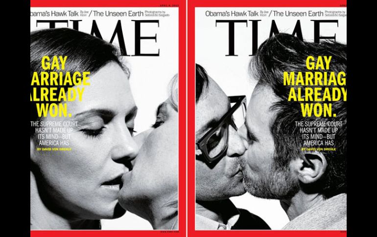 Internacional | En la portada doble se muestra a parejas homosexuales besándose La portada del Time apoya matrimonios gay Time invitó a parejas del mismo sexo de California y Nueva York (sitios donde son legales las uniones) para compartir momentos íntimos para el fotógrafo Peter Hapak Por: EL INFORMADOR 29 de marzo de 2013 - 12:30 hs Trabajo del fotógrafo Peter Hapak para la portada de la revista Times, la imagen fue publicada en Facebook. ESPECIAL / GUADALAJARA, JALISCO (29/MAR/2013).- Medios de comunicación estadounidenses han mostrado su posición sobre los matrimonios entre personas del mismo sexo, desde sus redes sociales la revista Time ha publicado un previo de sus portadas donde aparecen dos parejas homosexuales besándose bajo el título "Cómo el matrimonio gay ha ganado". La publicación anunció en su cuenta en Twitter y Facebook su próxima portada histórica que anuncia el artículo central sobre el cambio cultural hacia el reconocimiento de uniones del mismo sexo. Para ilustrar la historia del periodista Von Drehle, Time invitó a parejas del mismo sexo de California y Nueva York (sitios donde son legales las uniones) para compartir momentos íntimos para el fotógrafo Peter Hapak. Dos de estas parejas, Sarah Kate y Kristen Ellis-Henderson (casadas en 2011) y Hart Russell y Eric Labonte (comprometidos desde 2010), aparecen en la portada de esta semana. Así mismo, solicitaron a sus lectores responder la pregunta ¿Por qué es importante el matrimonio para usted? y compartir una fotografía que simbolizara su compromiso con otra persona, bajo el hashtag #TIMEGayMarriage. Temas Norte América Estados Unidos Matrimonio homosexual Lee También Asesinan a maestra en Oaxaca presuntamente por una calificación Llega "Melissa" al Atlántico; esta es la trayectoria de la tormenta A punto de aparecer el ciclón "Melissa"; a esta distancia está de México Tormenta tropical podría formarse en este punto del Pacífico mexicano Recibe las últimas noticias en tu e-mail Todo lo que necesitas saber para comenzar tu día Registrarse implica aceptar los Términos y Condiciones