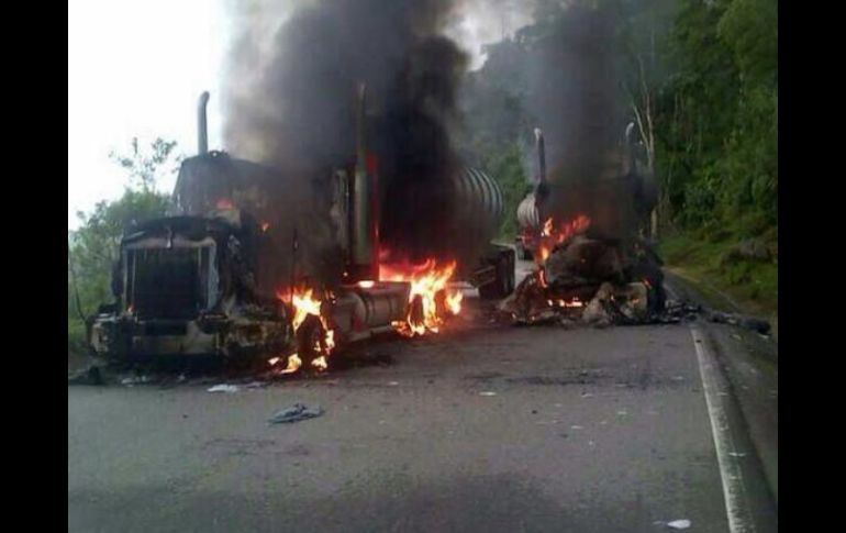 Internacional | Los guerrilleros interceptaron los camiones en una carretera del suroccidente del país Las FARC incendian caravana de camiones con petróleo Los guerrilleros interceptaron los camiones entre las poblaciones de Pitalito y Santa Rosa del país Por: NTX 5 de agosto de 2014 - 20:33 hs Aspecto de los camiones quemados. Tomada de @emaciastovar. ESPECIAL / BOGOTÁ, COLOMBIA (05/AGO/2014).- Guerrilleros de las Fuerzas Armadas Revolucionarias de Colombia ( FARC) incendiaron hoy cinco camiones que transportaban petróleo por una carretera del suroccidente de este país sudamericano, informaron las autoridades. El combustible era transportado en cinco camiones cisterna desde la refinería del municipio de Mocoa, en el sureño departamento de Putumayo, cuando fueron interceptados por los rebeldes entre las poblaciones de Pitalito y Santa Rosa. El Ejército de Colombia atribuyó el atentado a uno de los frentes de las FARC que operan en la región. Autoridades ambientales iniciaron un plan de emergencia para evitar que el combustible derramado en la vía llegue a las aguas de los ríos que cruzan por la zona. En el último mes, las FARC mantienen una ofensiva contra la infraestructura energética de Colombia, ante la cual el presidente Juan Manuel Santos ha dicho que pone en peligro las negociaciones de paz que mantienen desde noviembre de 2012 en La Habana. Temas América Latina FARC Colombia Atentados Recibe las últimas noticias en tu e-mail Todo lo que necesitas saber para comenzar tu día Registrarse implica aceptar los Términos y Condiciones