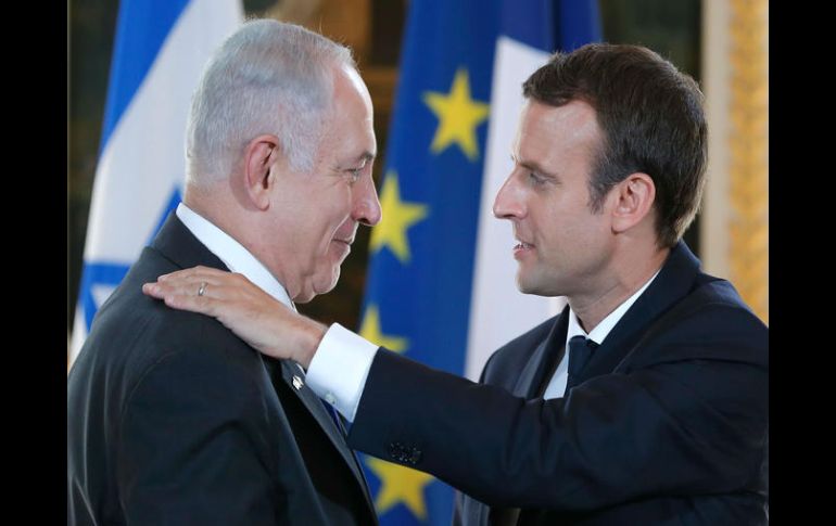 PARÍS, FRANCIA (16/JUL/2017).- El presidente francés, Emmanuel Macron, pidió en presencia del primer ministro israelí, Benjamin Netanyahu, la "reanudación de las negociaciones" entre Israel y los palestinos para alcanzar la solución de los dos Estados.Macron, en una comparecencia conjunta al término de dos horas de entrevista en el Palacio del Elíseo, reiteró a Netanyahu el "apoyo indefectible" a que Israel tenga garantizada su seguridad, con una alusión expresa a la potencial amenaza de Irán, pero también criticó la colonización de los territorios palestinos ocupados."Las condiciones de la negociación y de la paz no deben ser cuestionadas en la práctica", señaló Macron, en su primer encuentro bilateral con el jefe del Ejecutivo israelí.Insistió en que el objetivo tiene que ser dos Estados "con fronteras seguras y reconocidas y con Jerusalén como capital".Netanyahu hizo notar, por su parte, que "los palestinos se niegan a reconocer un Estado judío independiente" al margen de las fronteras que tenga, y contó que había transmitido a su interlocutor la inquietud israelí "ante cualquier forma de agresión" por parte del grupo yihadista Estado Islámico o de Irán.Sobre este último punto, Macron le garantizó su "vigilancia" para un cumplimiento "estricto" por parte de Irán del acuerdo que suscribió en 2015 con el Grupo 5+1 (integrado por los cinco miembros permanentes del Consejo de Seguridad de la ONU más Alemania) por el que se comprometía a no desarrollar tecnología nuclear con fines militares.También dijo que comparte "las inquietudes israelíes sobre el armamento" del grupo chií libanés Hizbulá, y anunció que tiene intención de continuar una acción "diplomática" para "erradicar" esa amenaza.El presidente francés, que recordó los cientos de miles de muertos y los millones de desplazados que ha causado el conflicto en Siria, hizo hincapié en "la necesidad de una transición incluyente y sostenible" y en la búsqueda de "una paz justa para los sirios".Aseguró que sobre esta cuestión "la convergencia de puntos de vista es grande" entre los dos países, como también lo es "en la lucha contra los grupos terroristas, sean los que sean".Netanyahu lo confirmó al afirmar que comparten "el mismo deseo de un Oriente Medio pacificado" y señaló la "posibilidad creciente de cooperación" para lograrlo, sobre todo porque Francia e Israel tienen que "reaccionar ante amenazas comunes".Macron había invitado a París al primer ministro israelí para que participara este lunes en el 75 aniversario de las redadas que llevaron a cabo las fuerzas del orden francesas en julio de 1942, durante el régimen colaboracionista con los nazis de Vichy, de más de 13 mil judíos, entre ellos más de 4 mil niños.La práctica totalidad de esos judíos fueron deportados al campo de exterminio de Auschwitz, donde fueron asesinados.