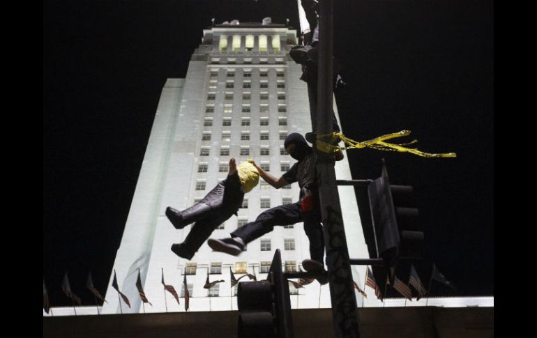 ESTADOS UNIDOS (10/NOV/2016).- Cientos de manifestantes opuestos a la victoria del virtual presidente electo Donald Trump se manifestaron esta noche frente a la alcaldía de Los Ángeles y bloquearon el tráfico de la autopista 101 causando un caos vial, reportaron autoridades policiacas. En la protesta los manifestantes colgaron y quemaron una figura de Trump al tiempo que lanzaban gritos y consignas. "No es mi presidente", "Dump Trump" -Botemos a Trump- y "Respeto para todas las mujeres", fueron algunas de sus consignas. El bloqueo se dio poco después de las 22:00 horas (6:00 GMT del jueves) cuando unas 300 personas caminaron a la autopista desde la alcaldía y detuvieron el trafico mientras eran vigilados por agentes de la Patrulla de Caminos de California y del Departamento de Policía de Los Ángeles. Muy temprano manifestantes frente a la alcaldía causaron destrozos y pintaron con aerosol a una camioneta de un canal de noticias local además de lanzar consignas contra Trump al que llamaron "violador y racista".