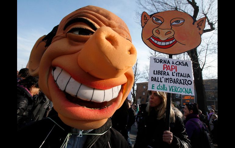 Internacional | Los inconformes protestan frente a la mansión del primer ministro Manifestantes exigen renuncia de Silvio Berlusconi Los inconformes protestan frente a la mansión del primer ministro italiano situada en Milán Por: EL INFORMADOR 7 de febrero de 2011 - 03:08 hs Manifestantes exigen la renuncia del mandatario italiano, Silvio berlusconi. REUTERS / MILÁN, ITALIA (07/FEB/2011).- Cientos de manifestantes se reunieron frente a la mansión del primer ministro Silvio Berlusconi en Milán para exigir su renuncia, en una protesta en la que algunos portaban caretas del mandatario (imagen) y otros arrojaban ropa interior femenina al aire. Berlusconi es blanco de una investigación bajo la sospecha de que tuvo relaciones sexuales con una adolescente de 17 años y usó el poder de su cargo para ocultarlo, acusaciones que ha rechazado. Fue la segunda manifestación contra Berlusconi el fin de semana. El sábado, miles de personas se congregaron en un estadio de Milán, incluidos varios intelectuales progresistas como los escritores Umberto Eco y Roberto Saviano. Temas Europa Silvio Berlusconi Italia Recibe las últimas noticias en tu e-mail Todo lo que necesitas saber para comenzar tu día Registrarse implica aceptar los Términos y Condiciones