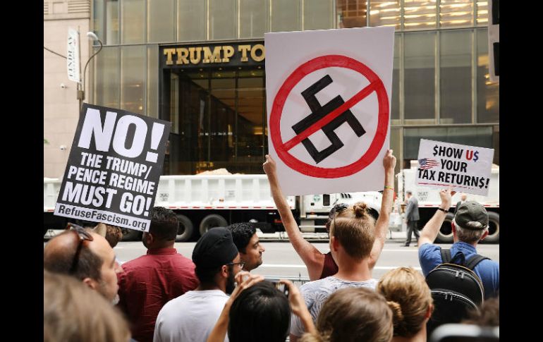 NUEVA YORK, ESTADOS UNIDOS (14/AGO/2017).- Miles de manifestantes y un fuerte dispositivo de seguridad están listos para recibir al presidente Donald Trump a su regreso a la ciudad de Nueva York por primera vez desde su juramentación.Los manifestantes se agruparon el lunes en las zonas que la policía delimitó frente a la Torre Trump, horas antes de la llegada del mandatario.En una manzana cercana hay una figura inflable caricaturesca de Trump.La policía ha colocado camiones llenos de arena como barrera alrededor del rascacielos, y varios retenes policiacos cerca de la entrada.Entre los manifestantes está la reverenda Jan Powell, ministra retirada de la Iglesia Unida de Cristo. Dice que está molesta por la respuesta del mandatario republicano al mitin que organizaron supremacistas blancos el fin de semana en Virginia y que derivó en hechos violentos.Inicialmente, Trump culpó a "muchos bandos" por la violencia. El lunes dijo que "el racismo es un flagelo".