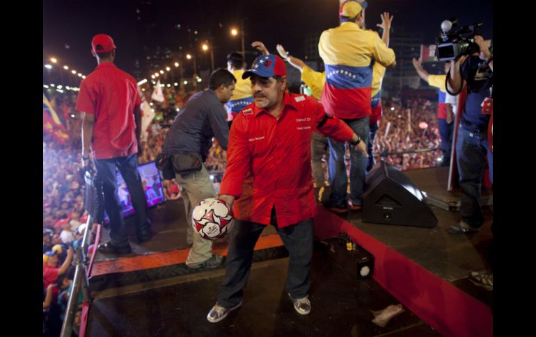 Internacional | El ex astro del futbol se considera un admirador del fallecido presidente Chávez Maradona participa en cierre de campaña de Maduro El ex astro del futbol se considera un admirador del proyecto socialista del fallecido presidente Chávez Por: AP 11 de abril de 2013 - 19:13 hs CARACAS, VENEZUELA (11/ABR/2013).- El ex astro del futbol Diego Armando Maradona, un confeso admirador del proyecto socialista del presidente Hugo Chávez, participó el jueves en el cierre de campaña del candidato oficialista a la presidencia de Venezuela, Nicolás Maduro, actual presidente encargado y designado heredero político por el ahora fallecido mandatario venezolano. El legendario capitán de la selección de Argentina, que ganó el Mundial de fútbol de 1986, lució una gorra con el tricolor venezolano y una camisa roja el color distintivo del chavismo que tenía bordado al lado izquierdo a la altura de su corazón las leyendas "Cristina K 2015", en aparente alusión a una posible reelección de la mandataria argentina Cristina Fernández de Kirchner. En la camisa también se podía leer "Chávez Comandante" y "Maduro Presidente". En su espalda tenía estampado el número "10" y su nombre. Maradona ha profesado sus simpatías por el ala izquierdista del peronismo que creó con su fallecido marido y antecesor Néstor Kirchner (2003-2007). Fernández se juega la continuidad en el poder más allá del 2015 en las próximas elecciones legislativas de octubre. La presidenta argentina ha guardado silencio sobre el tema de la reelección mientras sus adversarios políticos la acusan de pretender su segunda reelección en 2015, la que requeriría una eventual reforma de la Constitución argentina. "La mano de Dios está con nosotros", dijo uno de los presentadores del mitin en alusión a la célebre jugada de Maradona ante el arquero inglés Peter Shilton en el Mundial de México 1986. Maduro se paró junto a Maradona en una tarima y le entregó varios balones que el ex astro argentino firmó y luego con su pierna zurda los lanzó a la muchedumbre. Maradona expresó repetidamente su admiración a Chávez y en varias ocasiones se reunió con él en Venezuela y el extranjero. Incluso lo visitó en julio de 2011 en La Habana, cuando el gobernante venezolano recibió un primer ciclo de quimioterapia como parte del tratamiento contra un cáncer que finalmente le quitó la vida el 5 de marzo de este año. Maradona, que tiene tatuada la imagen del guerrillero argentino Ernesto "Che" Guevara en uno de sus brazos, es además admirador del ex presidente cubano Fidel Castro y en estuvo en Cuba recibiendo tratamiento contra su adicción a las drogas. Algunos especulaban que Maradona asistiría a los funerales de Chávez, pero no lo hizo. Las campañas presidenciales venezolanas concluyen el jueves, tres días antes de los comicios para elegir al sucesor de Chávez. Maduro ha aparecido a la cabeza de las preferencias, por encima de su rival opositor Henrique Capriles. Temas América Latina Venezuela Diego Armando Maradona Nicolás Maduro Elecciones en Venezuela Recibe las últimas noticias en tu e-mail Todo lo que necesitas saber para comenzar tu día Registrarse implica aceptar los Términos y Condiciones