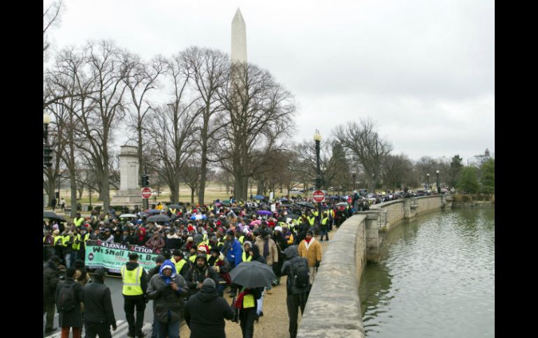 WASHINGTON, ESTADOS UNIDOS (14/ENE/2017).- Unas dos mil personas marcharon este sábado por las calles de Washington para protestar contra la retórica xenófoba y las políticas migratorias del presidente electo de EU, Donald Trump, así como contra los candidatos de "extrema derecha" nominados para su gabinete bajo el lema "Estamos aquí para quedarnos".Como parte de una acción conjunta convocada en más de cincuenta ciudades de todo el país por parte de organizaciones pro derechos de los inmigrantes y derechos civiles, alrededor de dos millares de personas se manifestaron hoy en la capital estadounidense clamando por los derechos de los inmigrantes.Tras una dura y ofensiva campaña electoral, en la que el magnate amenazó con medidas de deportación masiva, las asociaciones que luchan por defender a los indocumentados se han unido para reivindicar su papel en la sociedad estadounidense a menos de una semana de la toma de posesión del multimillonario."Estamos aquí para proteger a los inmigrantes y sus comunidades que tanto contribuyen a este país. No vamos a permitir que el miedo, el racismo y la intimidación triunfe", dijo Gustavo Torres, director Ejecutivo de la organización Casa de Maryland.Entre las principales reivindicaciones de hoy está la de proteger a los jóvenes indocumentados conocidos como "soñadores" de la deportación, en caso de que Trump derogue las medidas ejecutivas que puso en marcha el todavía presidente Barack Obama para evitar que fueran devueltos a sus países y concederles permiso de trabajo.El programa de Acción Diferida para los Llegados en la Infancia (DACA) resguarda a más de medio millón de jóvenes inmigrantes que llegaron siendo muy niños a EU, dándoles así estabilidad a ellos y a sus familias.Es el caso de Mónica Camacho, una joven indocumentada que llegó a EU en 2002 con apenas siete años desde México y que hoy ha querido sumarse a la protesta para dejar claro que pese al miedo, seguirán luchando."Este es nuestro hogar. Como inmigrantes nosotros damos mucho para este país. Nuestros papás nos trajeron muy pequeños, y es también el país de nuestros padres", dijo, en relación a aquellos que llevan décadas en suelo estadounidense."La comunidad tiene miedo, está asustada, pero eso no nos va a parar para seguir luchando. Existe el temor de qué va a pasar pero seguimos juntos", afirmó la joven.La cofundadora de la organización United We Dream (Juntos Soñamos), Cristina Jiménez, dijo estar "sumamente orgullosa" de que personas de "conciencia y compasión" en el país apoyen DACA y con ello a familias como la suya y "la de millones de inmigrantes y refugiados que Donald Trump ha prometido embestir"."Juntos, prepararemos a nuestras comunidades a oponerse a la agenda de odio y ganaremos", reiteró.Los manifestantes y activistas marcharon desde la Iglesia Metropolitana AME de la capital estadounidense hasta las inmediaciones de la Casa Blanca.