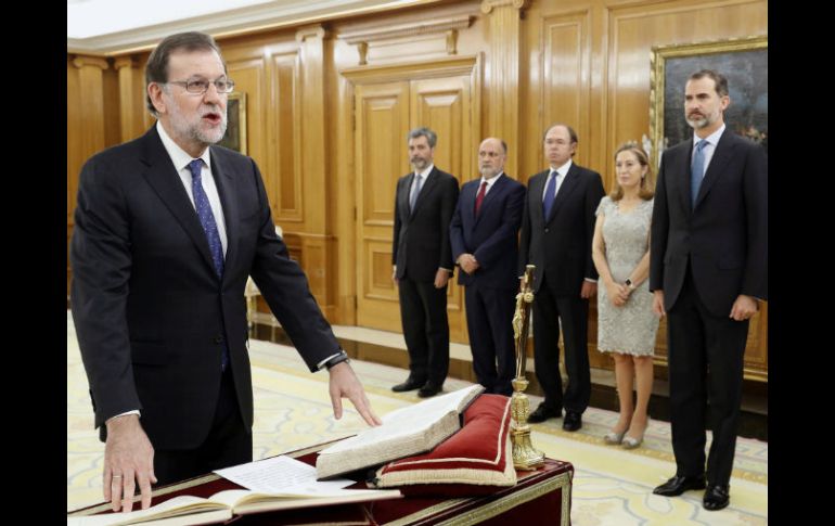 MADRID, ESPAÑA (31/OCT/2016).- El líder del PP (centroderecha), Mariano Rajoy, juró hoy como presidente del Gobierno español, cargo al que accedió en diciembre de 2011 y que ha renovado tras su reelección por el Congreso de los Diputados el pasado sábado.Rajoy juró ante el rey Felipe VI en un acto breve al que asistieron los presidentes de las principales instancias judiciales y políticas españolas.La Cámara eligió el día 29 a Rajoy por 170 votos a favor, 111 en contra y 68 abstenciones y puso fin a diez meses de interinidad, con un Gabinete sin competencias plenas.Las elecciones legislativas del 20 de diciembre de 2015 y 26 de junio de 2016 depararon un Parlamento fragmentado que hasta el sábado no había podido dar su confianza a un candidato.El socialista Pedro Sánchez, en marzo, y el propio Rajoy, en septiembre, habían fracasado en su intento.La abstención del PSOE (socialistas) ha permitido la elección del líder del PP y alejado la hipótesis de unos nuevos comicios en diciembre, que hubieran sido los terceros en un año.La actual legislatura, de cuatro años, debería terminar en junio de 2020, salvo que el propio Rajoy decida convocar comicios antes de esa fecha.Rajoy, de 61 años, gobernó con mayoría absoluta desde 2011 a 2015 y en estos díez últimos meses estuvo en funciones, con competencias limitadas.Es el sexto jefe del Ejecutivo en la actual etapa democrática española, que empezó tras la muerte del dictador Francisco Franco en 1975.Le han antecedido los centristas Adolfo Suárez (1976-81) y Leopoldo Calvo-Sotelo (1981-82), el socialista Felipe González (1982-96), José María Aznar, del PP (1996-2004) y el también socialista José Luis Rodríguez Zapatero (2004-11).Rajoy se dispone ahora a preparar el nuevo Gabinete, que dará a conocer el jueves próximo y que tomará posesión al día siguiente, también delante del rey.