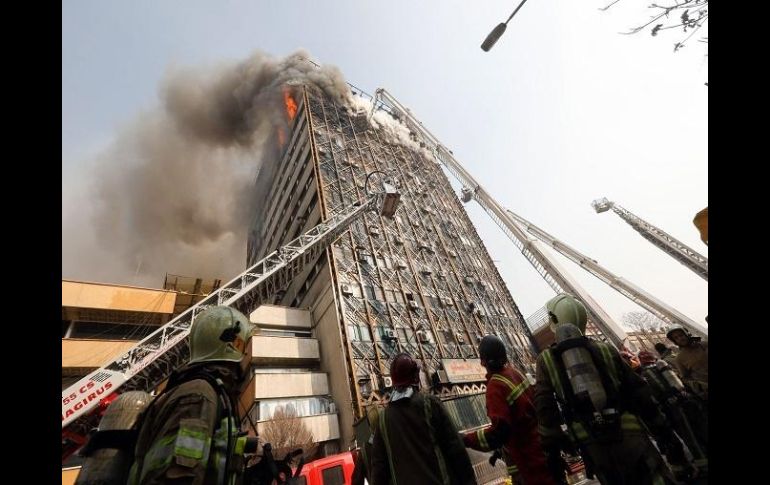 TEHERÁN, IRÁN (19/ENE/2017).- Unos 20 o 25 bomberos están atrapados bajo los escombros del edificio del centro de Teherán que se derrumbó hoy debido a un gran incendio, según el alcalde de la capital iraní.El alcalde, Mohamad Baqer Qalibaf, explicó a la televisión estatal que los equipos de rescate siguen buscando a los desaparecidos en la tragedia, que causó también decenas de heridos.Al desatarse pronto el fuego, a las 8:00 hora local (4:30 hora GMT), no habían llegado todos los trabajadores del conocido centro comercial Plasco, de 17 plantas de altura.Los comerciantes que se encontraban en el lugar cuando comenzó el incendio fueron evacuados por las escaleras de emergencia, por lo que en el momento del derrumbe el edificio estaba casi vacío, agregó Qalibaf.Un comerciante de la zona, Hosein Kolahi, testigo de los hechos, dijo a Efe que las escenas fueron "horrorosas" y que se vivieron momentos de mucha tensión."Parecía que se extinguían las llamas y los servicios de emergencia dijeron que estaba controlado el incendio, pero luego revivió", explicó Kolahi con voz nerviosa.Según él, además de los bomberos, algunos comerciantes se encontraban dentro del edificio cuando este se derrumbó, mientras que otro testigo indicó a Efe que había también algunos fotógrafos.Este último testigo precisó que el derrumbe ocurrió en pocos segundos, provocando la estampida de la gente que se hallaba en los alrededores.Algunos bomberos lloraban por la suerte de sus compañeros atrapados bajo las ruinas.Por su parte, la agencia semioficial Fars informó de que se teme por la vida de al menos medio centenar de personas, entre ellas treinta bomberos, que quedaron atrapados entre los escombros.La última cifra oficial de víctimas apunta a 70 heridos, en su mayoría bomberos, de los cuales 47 fueron atendidos en el lugar de los hechos y 23, trasladados al hospital.El centro comercial Plasco, construido en 1962 y un icono de Teherán, se derrumbó tres horas y media más tarde del inicio del incendio, que se propagó por todas las plantas.Además del centro comercial, otros edificios aledaños fueron evacuados, entre ellos las embajadas de Turquía y Reino Unido, aunque ninguno ha sufrido daños.No han trascendido las causas del fuego, que comenzó en la novena planta y provocó primero el derrumbe del muro septentrional del edificio, pero el gobernador de Teherán, Hosein Hashemí, ha descartado un acto terrorista.Los alrededores del centro comercial están cortados por las fuerzas de seguridad para facilitar las labores de rescate, en las que participan los bomberos, decenas de ambulancias y helicópteros.El centro comercial Plasco, que albergaba tiendas y talleres de confección y era considerado el primer edificio alto y moderno de Irán, estaba situado en la avenida Yumhuri, una de las principales del centro de Teherán.