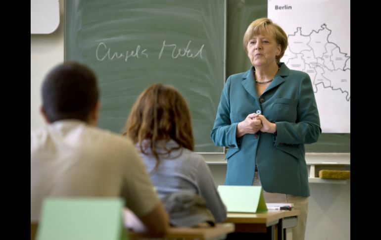 Internacional | Comparte sus recuerdos con los estudiantes de una escuela de un barrio berlinés Merkel, profesora por un día para contar historia del muro de Berlín La presidenta alemana comparte sus recuerdos con los estudiantes de una escuela de un barrio berlinés Por: AFP 13 de agosto de 2013 - 18:50 hs BERLÍN, ALEMANIA (13/AGO/2013).- La jefa del gobierno alemán, Angela Merkel, que aspira a su releeccion en las legislativas del 22 de septiembre, apareció por primera vez en público este martes tras sus vacaciones para contar a un grupo de estudiantes de secundaria la historia del muro de Berlín. Con una chaqueta verde y unos pantalones blancos, Merkel, que aspira a un tercer mandato de cuatro años, explicó a los jóvenes de una escuela de secundaria del elegante barrio berlinés de Prenzlauerberg, en territorio de la antigua RDA, la historia del muro de Berlín, que empezó a construirse hace exactamente 52 años. "1961 fue el año en que empecé a ir a la escuela", dijo Merkel en un tono personal con el que quiere seducir a los electores, y explicó que sus asignaturas favoritas eran el ruso, el inglés, el alemán y las matemáticas. Merkel, que tiene un doctorado en física, dijo estar "entusiasmada" de compartir sus recuerdos con los adolescentes, que no paraban de pedirle fotos, y confesó haber repasado "un poco" la historia del muro antes de venir. "Fue muy emocionante. Pensaba que sería más rígida porque es una persona muy conocida. Fue interesante escuchar su historia personal", dijo una de las estudiantes, Lea Quiring, de 18 años, a la revista Spiesser, organizadora del evento. Angela Merkel nació en Alemenia Occidental pero pasó su infancia en un pequeño pueblo de la República Democrática Alemana (RDA) donde su padre, un pastor protestante, decidió instalarse. A principios de agosto, Peer Steinbruck, el rival socialdemócrata de Merkel, provocó una polémica al acusar a la canciller de no tener "pasión" por Europa a causa de su educación en el este. Temas Europa Alemania Angela Merkel Muro de Berlín Lee También ¿Cómo se despliegan los cárteles mexicanos en Australia? La sinfonía teutona suena en Sinsheim Ángela Aguilar celebra su cumpleaños 22 sin Christian Nodal Apuñalan a alcaldesa recién electa en Alemania; esto se sabe Recibe las últimas noticias en tu e-mail Todo lo que necesitas saber para comenzar tu día Registrarse implica aceptar los Términos y Condiciones