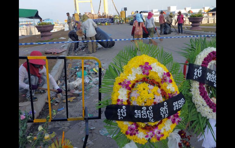 Internacional | Accidente provoca 456 muertes Miedo por hundimiento del puente es la causa de la estampida en Camboya Resultados preliminares de la investigación señalan que la estampida fue provocada por miedo a que el puente atiborrado de gente se cayera Por: AFP 24 de noviembre de 2010 - 08:22 hs Trabajadores barren el puente donde ocurrió la estampida, y recogen las pertenencias de las víctimas. AFP / PHNOM PENH, CAMBOYA (24/NOV/2010).- La estampida que causó más de 450 muertos el lunes en Phnom Penh fue causada por rumores de que el puente, atiborrado de gente, podía hundirse, según los resultados preliminares de la investigación. "Las muertes ocurrieron porque el puente estaba abarrotado y hubo miedo de que fuera a caerse. El puente estaba suspendido de unos cables, y se movía", declaró Prum Sokka, que dirige la subcomisión investigadora del accidente. El lunes, una súbita estampida atrapó a cientos de personas en un puente sobre el río Mekong que une la capital camboyana a la isla de los Diamantes, donde se celebraban las fiestas de la tradicional y popular Fiesta del Agua. La estampida dejó 456 muertos, según un nuevo balance anunciado este miércoles por el Ministerio camboyano de Asuntos Sociales. "Ahora que cada provincia entregó su informe (...), el número total (de víctimas) es de 456", declaró Ith Samheng, que preside el comité de investigación sobre la tragedia. La Fiesta del Agua, el mayor festival tradicional del país, tiene por objeto agradecer al río Mekong por alimentar las tierras fértiles del país y por sus abundantes peces. Coincide con la luna llena de noviembre y marca el fin de las crecidas y la inversión de la corriente de Tonle Sap. Temas Asia Accidentes en el mundo Camboya Lee También Reportan carambola en autopista a Morelia Muere conductor tras choque entre camioneta y camión en Arandas Conmociones cerebrales, la cuarta lesión más frecuente en partidos de la Conmebol Helicóptero se desploma en Huntington Beach, California; reportan cinco heridos Recibe las últimas noticias en tu e-mail Todo lo que necesitas saber para comenzar tu día Registrarse implica aceptar los Términos y Condiciones