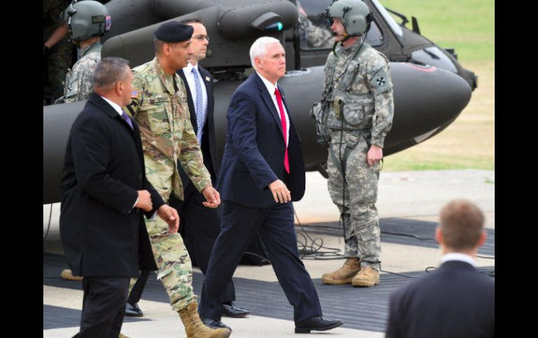 MUNSAN, COREA DEL SUR (16/ABR/2017).- El vicepresidente estadounidense, Mike Pence, visitó el lunes la puerta de la zona desmilitarizada que sirve como frontera entre Corea del Sur y del Norte, un día después de que Pyongyang efectuó una prueba de misil fallida.Pence viajó en helicóptero a la base de Camp Bonifas, un puesto de la ONU dirigido por Estados Unidos, que está unos metros al sur de la zona desmilitarizada (DMZ).El viaje programado hace meses, se concreta en el momento de mayor tensión política con Pyongyang.En la última semana, proyecciones de imágenes geoespaciales dejaron entrever que Corea del Norte podía estar preparando un nuevo ensayo nuclear.El sábado, Pyongyang celebró un gran desfile militar para conmemorar el "Día del Sol", fecha del nacimiento de Kim Il-sung, abuelo del actual dirigente norcoreano Kim Jong-un.En las primeras horas del domingo, Seúl detectó un lanzamiento de misil en el área de Simpo, en la provincia de Hamkyong del Sur.El Departamento de Defensa de Estados Unidos confirmó que Corea del Norte lanzó lo que parecía ser un misil y dijo que el lanzamiento falló "casi inmediatamente".El presidente Donald Trump había advertido esta semana que Estados Unidos se "ocuparía" del caso norcoreano llegado el momento, y altos funcionarios de su gobierno confirmaron que se había considerado la posibilidad de acciones militares contra Pyongyang.Corea del Norte aseguró a su vez estar "preparada" para una guerra nuclear con Estados Unidos.