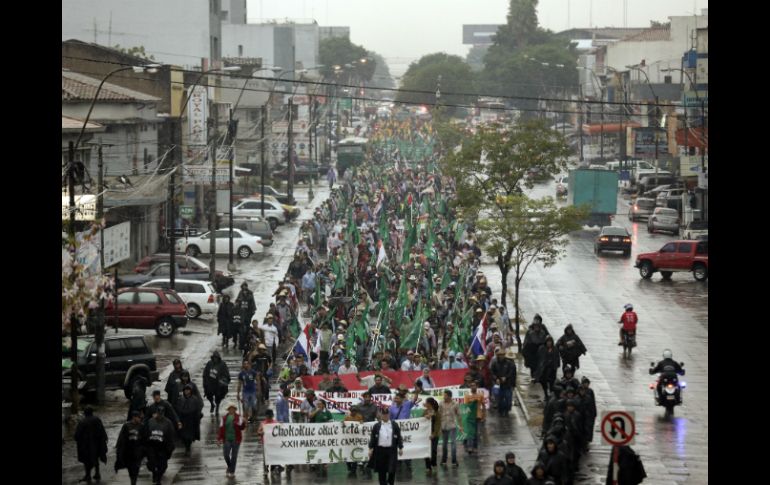 Internacional | Piden la dimisión del presidente Horacio Cartes y la aplicación de una reforma agraria Miles de campesinos se manifiestan en Asunción, Paraguay Piden la dimisión del presidente Horacio Cartes y la aplicación de una reforma agraria Por: EFE 26 de marzo de 2015 - 10:37 hs La Gran Marcha del Campesino Pobre moviliza desde hace 22 años a labriegos hasta la capital del país. AP / J. Saenz ASUNCIÓN, PARAGUAY (26/MAR/2015).- Miles de labriegos del interior de Paraguay, apoyados por simpatizantes de sus reivindicaciones, recorrieron las calles de Asunción exigiendo la dimisión del presidente paraguayo, Horacio Cartes, y la inmediata aplicación de una reforma agraria. La Gran Marcha del Campesinado Pobre, nombre de la protesta, moviliza desde hace 22 años a labriegos paraguayos hasta la capital del país con objeto de recordar al Gobierno y a la clase política las urgentes necesidades y el olvido que sufre el sector. ''Horacio, fuera del Palacio'' (en alusión al Palacio del Gobierno) y ''Cartes Fuera'' fueron algunos de los eslóganes coreados por los manifestantes, que desfilaron bajo la molesta lluvia que desde tempranas horas de la mañana caía sobre Asunción. ''He participado en las 22 marchas y no me cansaré de pedir una reforma agraria justa'', dijo Pablo López, de 57 años, uno de los participantes. Convocados por la Federación Nacional Campesina (FNC), la mayor organización de labriegos de la nación guaraní, la marcha transcurrió por las principales arterias de Asunción hasta dirigirse a las proximidades del Congreso, en el centro, donde finalizará la jornada con un acto político. Los campesinos presentes en la marcha comenzaron a llegar a Asunción la víspera, desde diferentes comunidades de los departamentos de San Pedro, Concepción, Canindeyú, Caaguazú, Paraguarí, Itapúa, Misiones, Guairá y Caazapá, todos ellos en la región oriental de Paraguay. Una vez en la capital se concentraron en las instalaciones del Ex Seminario Metropolitano, desde donde partió la marcha, en la que también tomó parte el partido campesino Paraguay Pyahurá (''Paraguay nuevo'', en lengua guaraní). En esta 22 edición el acto también contó con el apoyo del denominado Congreso Democrático del Pueblo, un conglomerado de organizaciones sociales constituido a primeros de marzo para articular de forma conjunta las movilizaciones ciudadanas. Como cada año, los campesinos denuncian la inexistencia de una reforma agraria y el empeoramiento de sus condiciones de vida, debido a la merma de ingresos económicos por la caída de los precios de los productos agrícolas y por la intervención de intermediarios. Temas América Latina Paraguay Indígenas Manifestaciones en el mundo Lee También José Jerí asume como presidente de Perú Congreso de Perú destituye como presidenta a Dina Boluarte Chivas viaja con ‘Chicharito’ y Robinho al amistoso ante América en Estados Unidos Estas son las bajas de Chivas para el próximo Clásico Nacional Recibe las últimas noticias en tu e-mail Todo lo que necesitas saber para comenzar tu día Registrarse implica aceptar los Términos y Condiciones