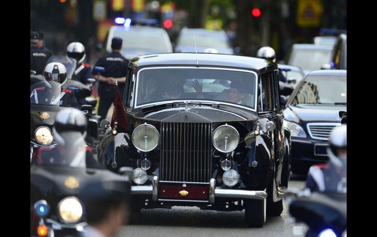 Internacional | El nuevo rey se dirige a la ceremonia solemne para su proclamación Miles de ciudadanos saludan a los Reyes en su camino al Congreso El nuevo rey se dirige a la ceremonia solemne para su proclamación Por: EFE 19 de junio de 2014 - 02:34 hs Los nuevos reyes viajan en un Rolls-Royce de época de Patrimonio Nacional. AFP / MADRID, ESPAÑA (19/JUN/2014).- Miles de ciudadanos saludan desde las calles de Madrid al nuevo Rey de España, Felipe VI, y su esposa, Letizia, en su trayecto en automóvil desde el Palacio de la Zarzuela al Congreso de los Diputados, donde hoy se celebra la sesión solemne de proclamación del nuevo monarca. Un grupo de personas con banderas de España se congregaron en el acceso por carretera al Palacio de la Zarzuela para ser los primeros en saludar a los nuevos Reyes en su camino al centro de Madrid. Los nuevos reyes viajan en un Rolls-Royce de época de Patrimonio Nacional, escoltados por la guardia motorizada, en un trayecto flanqueado con fuertes medidas de seguridad. La Familia Real hace este recorrido en dos vehículos, el primero ocupado por los nuevos Reyes, y un segundo en el que van sus hijas, la Princesa de Asturias y la infanta Sofía. Las calles del trayecto se encuentran valladas y protegidas por un fuerte dispositivo policial, que controla los accesos y registra mochilas y bolsos. Minutos antes, Juan Carlos de Borbón ha colocado el fajín de capitán general de las Fuerzas Armadas a su hijo el Rey Felipe VI en un acto breve y solemne celebrado en el Palacio de la Zarzuela ante la Reina Letizia, el ministro de Defensa y la cúpula militar al completo. Temas Europa España Realeza Felipe VI Lee También Príncipe Andrés renuncia a todos sus títulos reales ¿Cómo se despliegan los cárteles mexicanos en Australia? Activistas lanzan pintura a un cuadro de Cristóbal Colón en museo de Madrid España consigue su boleto a los cuartos de final del Mundial Sub-20 Recibe las últimas noticias en tu e-mail Todo lo que necesitas saber para comenzar tu día Registrarse implica aceptar los Términos y Condiciones