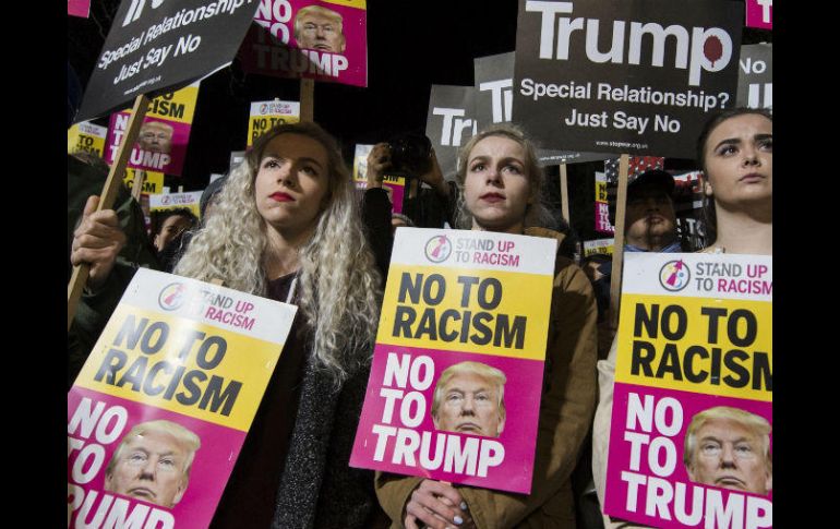 LONDRES, INGLATERRA (21/ENE/2017).- Miles de personas marcharon este sábado por el centro de Londres con motivo de las protestas que se están llevando a cabo en todo el mundo contra el nuevo presidente de Estados Unidos, Donald Trump, y sus despectivas declaraciones sobre las mujeres.La mayoría de los participantes eran mujeres, aunque también salieron a manifestarse hombres y niños, y desfilaron desde la embajada de Estados Unidos hasta Trafalgar Square, cantando "dump Trump" ("Trump basurero") y portando pancartas en las que pedían igualdad de derechos.Hannah Bryant, una empleada de museo de 34 años, acudió con su hija de cuatro años y ambas llevaban gorros de punto de color rosa rematados por dos picos, los "gorros vagina", que lucieron manifestantes de Estados Unidos."Le he estado enseñando sobre la igualdad y los prejuicios, quiero que vea cuánta gente cree en ello", afirmó.Oliver Powell, un actor de 31 años, que considera a Trump una "persona odiosa", dijo: "Quiero que la mayoría de estadounidenses que no votaron por él sepan que tienen apoyo en todo el mundo"."Uno no puede creer que él sea real", dijo su amiga Emily Chase, de 36 años.Muchas manifestantes eran madres e hijas, que se unieron a sindicalistas, grupos feministas, organizaciones de defensa de derechos civiles y al alcalde de Londres, Sadq Khan, en una protesta global celebrada al día siguiente de la investidura de Trump."Es un sentimiento de solidaridad: no en nuestro nombre", aseguró Jill Pickering, un estudiante estadounidense de 56 años. "Estoy enfadado, no voté por Trump", añadió."Creo que esto va a estimular a los partidos liberales, los demócratas (de Estados Unidos) y partidos de izquierda en este país que han sufrido derrotas electorales. ¿Qué nos queda? Protestar", apuntó su amiga Sarah Macdonald, una directiva de 51 años.