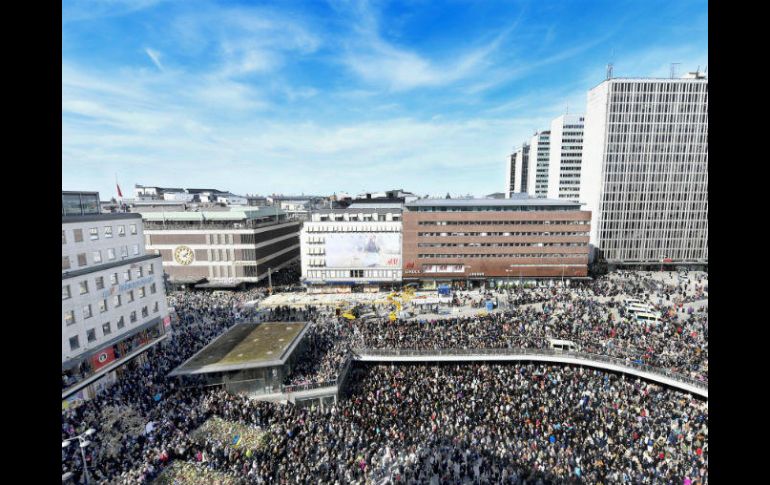 ESTOCOLMO, SUECIA (09/ABR/2017).- Miles de personas se concentraron en la céntrica plaza Sergel y sus inmediaciones, a pocos metros del escenario del atentado del viernes en Estocolmo en el que murieron cuatro personas, para enviar un mensaje de esperanza y de paz.La concentración, convocada por el bloguero de origen iraní Damon Rasti a través de las redes sociales, atrajo a una multitud que abarrotó la plaza y las calles colindantes.Muchos de los asistentes llevaban flores, pancartas a favor del amor -en alusión al lema de la manifestación- y banderas suecas, en medio de una fuerte presencia policial y en un ambiente más relajado que el de ayer, cuando también miles de personas desfilaron por la zona para rendir homenaje a las víctimas del ataque."Debemos ser solidarios con la gente, todos estamos bajo el mismo paraguas. No vamos a quedarnos en casa como si nada, pensando en que somos víctimas", dijo Imram, de origen paquistaní, pero que lleva viviendo 32 años en Suecia, adonde llegó de niño.Acompañado por su familia y varios amigos, Imram se desplazó desde uno de los suburbios de la capital hasta la zona para repartir de forma gratuita plátanos, café y agua a los viandantes.Entre los asistentes había muchas familias con niños pequeños y bebés, como la de Didrik, un joven sueco que acudió acompañado por su novia y su hijo de apenas unos meses, a quien llevaba en brazos."Queremos mostrar nuestro apoyo a las víctimas y decir que no tenemos miedo", afirmó Didrik, quien destacó la importancia que para él tiene que su hijo estuviera presente.Este joven sueco trabaja a unos 500 metros de la principal calle peatonal donde hace dos días un camión, conducido supuestamente por un ciudadano uzbeko de 39 años, atropelló a una multitud antes de empotrarse contra unos grandes almacenes."Nuestra forma de vivir y nuestro estilo tolerante asustan a muchas fuerzas oscuras", declaró al inicio de la concentración Rasti, quien aseguró entre aplausos: "Nunca dejaremos que el mal nos derrote o nos cambie".Rasti fue una de las personas que pronunciaron breves discursos en una ceremonia que duró una hora y en la que hubo varias actuaciones musicales."Hoy estoy orgullosa de los habitantes de Estocolmo. La ciudad está unida, se puede ver", resaltó la alcaldesa Karin Wanngård el día en el que el centro de la capital sueca recuperó la normalidad, al levantarse anoche el cordón de seguridad instalado el viernes para facilitar el trabajo de los investigadores.Los cientos de flores y velas depositadas ayer en las vallas de seguridad y las que rodean las obras en la calzada fueron trasladadas este domingo a las escaleras de la plaza Sergel, adonde la gente continuó llevando ofrendas florales, que también colocaba en los coches de policía situados en la zona.En el tablón de madera que tapa la entrada de los grandes almacenes muchas personas dejaron escritos mensajes en sueco y otros idiomas en contra del terrorismo y en favor de la paz El ambiente de moderado optimismo de la concentración solo se interrumpió a las 14:53 hora local (12.53 GMT), la hora en que el viernes los servicios de emergencia recibieron la primera llamada alertando del ataque, cuando se guardó un minuto de silencio.Tras la actuación del popular cantante Nano, la concentración la cerró el periodista y presentador de televisión Rickard Sjöberg con unas palabras del líder afroamericano Martin Luther King: "El odio no puede acabar con el odio, tan solo el amor puede".