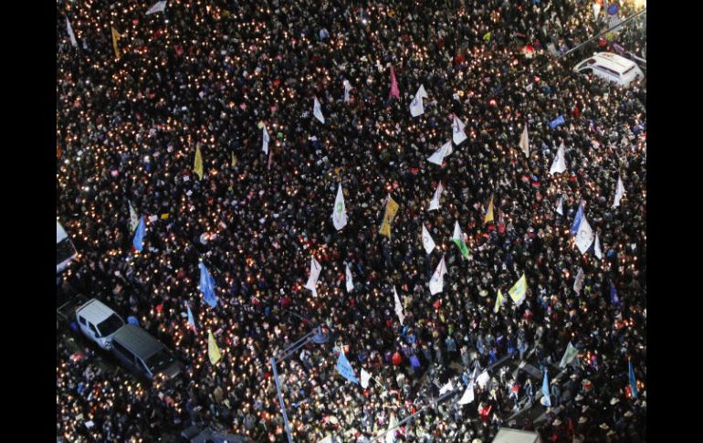 SEÚL, COREA DEL SUR (12/NOV/2016).- Cientos de miles de surcoreanos han salido este sábado a las calles de Seúl para participar en una manifestación convocada para exigir la dimisión de la presidenta Park Geun Hye, por un escándalo de corrupción y tráfico de influencias. Representantes de unas mil 500 organizaciones civiles instaron a la presidenta Park a renunciar por el escándalo en torno a su amiga Choi Soon-sil, conocida como la consejera chamán de la mandataria. De acuerdo con los organizadores de la protesta, en la marcha pueden participar hasta un millón de personas, reportó la agencia oficial de noticias Yonhap. En este caso, será la mayor protesta desde el comienzo del siglo XXI. La policía planea movilizar hasta 25 mil agentes para mantener el orden en las calles de la capital. El escándalo en torno a Park Geun-hye estalló después de que la presidenta se disculpara por la fuga de los discursos presidenciales a Choi Soon-sil antes de que se hicieran públicos. Park, presuntamente, permitió a su confidente Choi Soon Sil, quien no ocupa ningún puesto gubernamental, ejercer influencias sobre los asuntos estatales. Choi es acusada también de utilizar sus lazos estrechos con la presidenta para obtener beneficios ilegales. Tras el escándalo, la popularidad de la mandataria ha caído a mínimos históricos a sólo un año de la realización de comicios presidenciales en Corea del Sur.