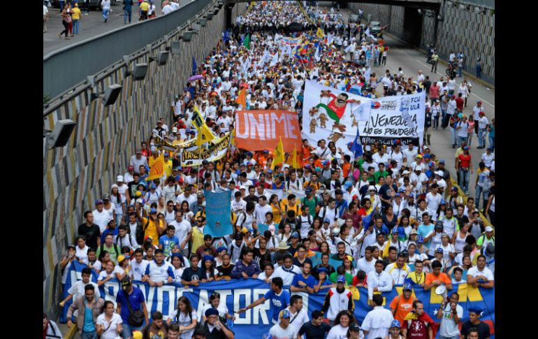 CARACAS, VENEZUELA (01/SEP/2016).- Miles de opositores venezolanos comenzaron a movilizarse este jueves en las calles de Caracas, en lo que espera sea una marcha histórica, para exigir un referendo revocatorio contra el presidente Nicolás Maduro, quien responde al desafío con otra manifestación, entre temores de brotes de violencia.Contingentes de policías y tanquetas se ubicaron en varios sectores de la ciudad, escenario de lo que la oposición llama "Toma de Caracas", en el este, y de la "Toma de Venezuela" convocada por chavistas en el centro, donde está el palacio presidencial.Vestidos de blanco, con banderas de Venezuela y pancartas que rezan "Cambio" y "Revocatorio ya", los opositores se concentran en el este de Caracas, bastión opositor. "O salimos a marchar o nos morimos de hambre, el gobieno ya no nos asusta", dijo Ana González, de 53 años, quien viajó 12 horas en autobús para llegar a la capital.En el centro, en Plaza Bolívar, ataviados con camisas y gorras rojas, los chavistas también empezaban a concentrarse. "Estamos aquí para responder a nuestro presidente y defendiendo la revolución", aseguró Carolina Aponte, ama de casa de 37 años.Cientos de policías forman una enorme barrera en Plaza Venezuela para evitar que las marchas choquen. Varios negocios, estaciones del metro y calles del este están cerradas."La oposición tiene el balón y se adentra al campo del adversario", opinó el analista Luis Vicente León, presidente de Datanálisis, quien se preguntó si "el gobierno entenderá que seguir arrinconando a la mayoría es una bomba de tiempo".Ocho de cada 10 venezolanos quiere un cambio de gobierno, según la firma Datanálisis. Golpeada por la caída de los precios del petróleo, Venezuela sufre una escasez de alimentos y medicinas del 80% y una inflación que el FMI proyecta en 720% para este año.La opositora Mesa de la Unidad Democrática (MUD) se juega el todo por el todo y confía en abrir este jueves una nueva etapa de movilizaciones para presionar al Consejo Nacional Electoral (CNE) -al que acusa de chavista- a que fije la fecha de recolección de cuatro millones de firmas necesarias para convocar el referendo revocatorio.La MUD asegura que el referendo es una "válvula de escape" y que sólo cambiando al gobierno y a su modelo socialista se acabará la crisis. Maduro denuncia una guerra económica" "de empresarios de derecha y una "conspiración" de la oposición "fascista" aliada con Estados Unidos. Termómetro opositor Pese al descontento popular, la oposición no convoca multitudes desde 2014, según analistas en parte por el miedo a un estallido de violencia, como en aquellas manifestaciones que exigían la salida de Maduro y que dejaron 43 muertos."La marcha es una especie de termómetro para medir la capacidad de convocatoria de la oposición. Si no es suficientemente concurrida puede contribuir a desmoralizar a la población", afirmó Diego Moya-Ocampo, analista del IHS Markit Country Risk, con sede en Londres.Para León está por verse "si la gente entenderá que el éxito de la marcha es de articulación a futuro o se frustrará esperando de ella mucho más de lo que debe".La MUD busca que el referendo se haga antes del 10 de enero porque si Maduro pierde, habrá elecciones; pero si es revocado después del cuarto año de su mandato, que se cumple ese día, la constitución sostiene que debe ser sustituido por su vicepresidente. Según la firma Venebarómetro, 64% de los electores votaría por revocarlo."El gobierno le tiene miedo a la jornada pacifica del pueblo. Lo que se busca hoy es mostrar que estamos organizados, luchando por una solución pacífica, democrática, electoral y constitucional", aseguró el ex candidato presidencial Henrique Capriles. Contraofensiva chavista El gobierno vincula lo que llama "golpe parlamentario" en Brasil contra Dilma Rousseff a una conspiración de Estados Unidos, parte de la cual, asegura, es la marcha de "la derecha fascista venezolana"."Tienen un plan golpista para ensangrentar a Venezuela. No le creo una palabra a la MUD", afirmó el presidente socialista, quien advirtió que quien genere violencia "va preso".A pocas horas de la marcha, Maduro anunció que pedirá al Tribunal Supremo de Justicia (TSJ), también acusado por la MUD de servir al gobierno, que evalúe levantar la inmunidad a los parlamentarios, mayoritariamente opositores, para "mantener la paz" y "combatir el golpismo"."Ni una piedra, ni una capucha, ni una botella rota. Lo que va a haber es pura ciudadanía democrática en la calle", aseguró el vocero de la MUD, Jesús Torrealba.En vísperas de la marcha, las autoridades encarcelaron a tres dirigentes opositores que acusaron de planear actos violentos. Este jueves Capriles denunció el arresto de dos alcaldes del estado de Guárico (norte) y la retención de varios autobuses en puestos de control para evitar que lleguen a Caracas.El Sindicato de Periodistas denunció que las autoridades rechazaron el ingreso de varios corresponsales extranjeros, entre ellos del diario francés Le Monde, que iban a cubrir la marcha opositora.