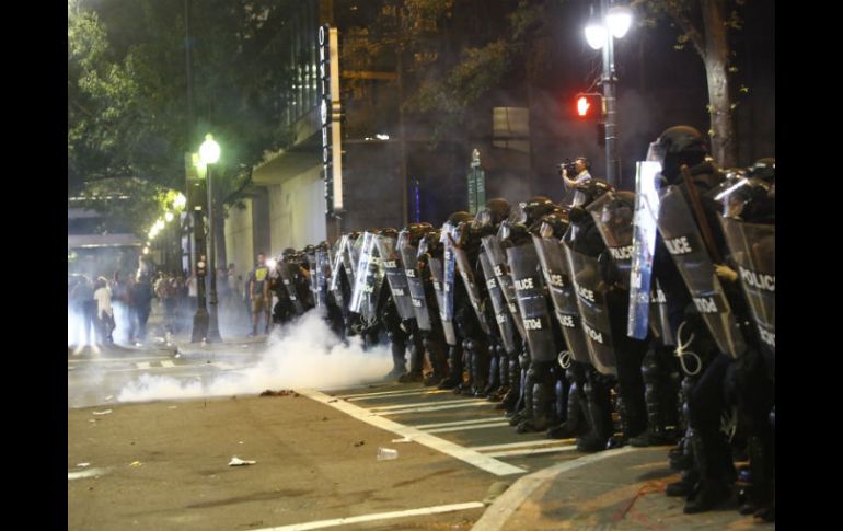 CHARLOTTE, ESTADOS UNIDOS (21/SEP/2016).- Las autoridades trataban el miércoles de calmar el enojo público y corregir lo que describieron como información falsa, mientras Charlotte enfrentaba una segunda noche de protestas violentas, sumándose a la lista de ciudades estadounidenses donde ha estallado la furia por la muerte de un hombre negro a manos de la policía.Un hombre murió la noche del miércoles tras recibir un disparo mientras los manifestantes se arremolinaban cerca de policías vestidos con equipo antimotines cerca de un céntrico hotel. La ciudad de Charlotte dijo en Twitter que no fue baleado por ningún oficial de policía.Poco después, la policía empezó a lanzar granadas aturdidoras contra los manifestantes que lanzaban pirotecnia hacia los oficiales. Luego lanzaron gas lacrimógeno contra los cientos de manifestantes y la mayoría se dispersó.Ante la negativa de las autoridades de revelar algún video sobre la balacera del martes en la que perdió la vida Keith Lamont Scott, de 43 años, el enojo ha crecido al haber emergido dos versiones completamente diferentes sobre lo ocurrido: La policía dice que Scott no obedeció ordenes reiteradas de que bajara su pistola, mientras que residentes del barrio dicen que él sostenía un libro, no una arma, mientras esperaba que su hijo bajara del autobús escolar.La muerte encendió tensiones raciales en una ciudad que parecía haber tomado distancia de problemas que absorbieron otros lugares.Las protestas destructivas del martes se extendieron a la noche del miércoles cuando un grupo de manifestantes se separó de una vigilia de oración pacífica y marchó a través del centro de Charlotte. La policía mantuvo su distancia durante aproximadamente una hora, pero se incorporaron policías con equipo antimotines conforme los manifestantes se acercaban a un hotel de lujo.Seis policías sufrieron heridas menores, dijeron paramédicos.Los policías antimotines comenzaron entonces a marchar brazo con brazo a través de las intersecciones del centro de Charlotte disparando gas lacrimógeno a la gente que acometía contra ellos. Al menos un manifestante derribó a un reportero durante una transmisión en vivo.