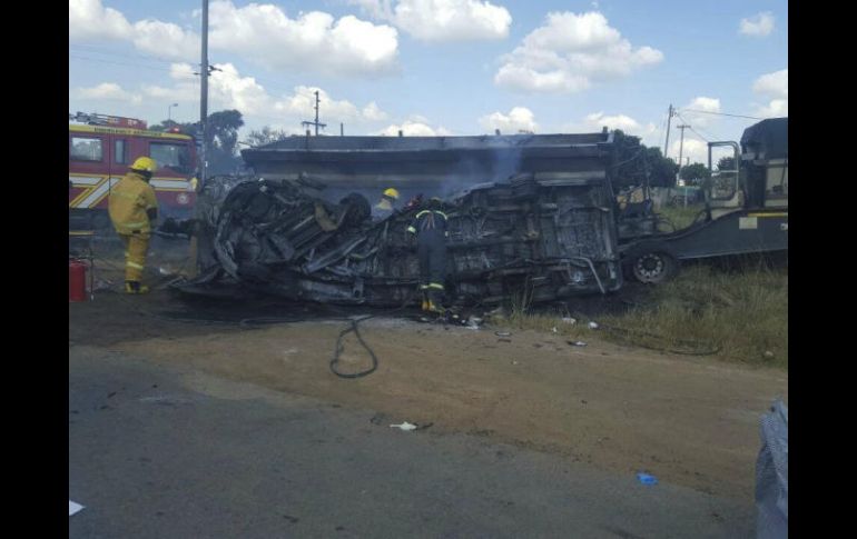 JOHANNESBURGO, SUDÁFRICA (20/ABR/2017).- Al menos 20 niños murieron este viernes al chocar con un camión el minibús de transporte escolar en el que viajaban cerca de la localidad sudafricana de Bronkhorstspruit, 95 kilómetros al noreste de Johannesburgo, informó un portavoz de los servicios de emergencias.Los menores eran alumnos de escuelas primarias y secundarias, y murieron en el acto después de que el vehículo se incendiara tras la colisión."Cuando los paramédicos llegaron al lugar del accidente encontraron a los bomberos allí. Los bomberos habían apagado ya las llamas del vehículo", explicó en un comunicado el portavoz del servicio de emergencias ER24, Russell Meiring.Meiring publicó en su cuenta de Twitter una foto del minibús volcado y totalmente calcinado junto al camión con remolque contra el que se estrelló.En el momento del accidente, del que por el momento se desconocen las causas, el minibús trasladaba a los niños a sus casas después de la jornada escolar.Según el consejero de Educación de la provincia de Gauteng, Panyaza Lesufi, el minibús transportaba a más personas de las que tenía permitidas.Las primeras informaciones hablan de siete supervivientes, que fueron sacados a tiempo del vehículo y han sido trasladados a hospitales de la zona.