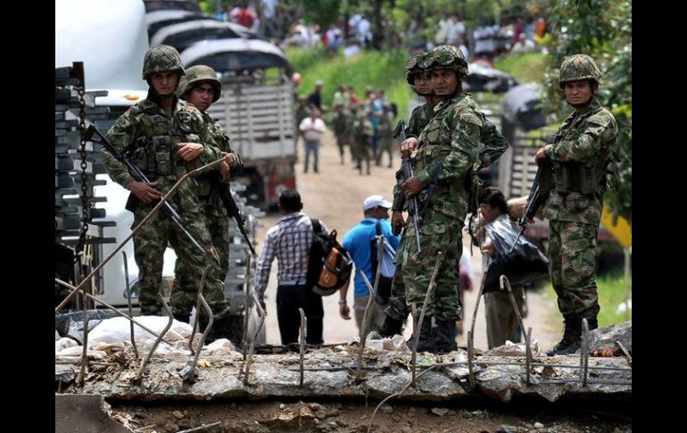 Internacional | El Ejército colombiano reportó la muerte de un presunto guerrillero Mueren dos soldados en combate con las FARC Los enfrentamientos se registraron en el caserío La Aurora, entre tropas del Batallón de Combate Terrestre No. 87 y miembros de las FARC Por: EFE 24 de julio de 2012 - 21:06 hs El presidente Santos condenó ese acto y dijo que con esas acciones los rebeldes buscan desesperar a la gente. EFE / BOGOTÁ, COLOMBIA (24/JUL/2012).- Dos soldados colombianos murieron hoy en un combate con guerrilleros de las FARC en el sureño departamento del Caquetá, mientras que otro uniformado resultó herido, informaron fuentes militares. Los enfrentamientos se registraron en el caserío La Aurora, entre tropas del Batallón de Combate Terrestre No. 87 y miembros de las Fuerzas Armadas Revolucionarias de Colombia (FARC). Un comunicado del Ejército indicó que al lugar fueron enviados refuerzos para neutralizar a los guerrilleros que, según lugareños, cargaban al momento de su huida con varios muertos y heridos. En otras acciones en el Caquetá, el Ejército colombiano reportó la muerte de un presunto guerrillero de las FARC y la captura de otro, al parecer "ideólogo" de la llamada compañía "José Antonio Galán" de esa organización rebelde. El fin de semana pasado las FARC derribaron en ese mismo departamento un puente en el municipio de San Vicente del Caguán, sabotaje que dejó aislada una vasta región. El presidente colombiano, Juan Manuel Santos, condenó ese acto y dijo que con esas acciones los rebeldes buscan "desesperar a la gente". La estructura será reparada en dos semanas por ingenieros militares que ya comenzaron los trabajos. Temas América Latina FARC Colombia Lee También ¿Dónde ver EN VIVO el partido de J13 Cruz Azul vs América? Zonas del EOU donde aún hay boletos para el Cruz Azul vs América ¿Dónde ver Argentina vs Colombia: semifinal del Mundial Sub-20? Hay mejoría, pero el futuro es “incierto” Recibe las últimas noticias en tu e-mail Todo lo que necesitas saber para comenzar tu día Registrarse implica aceptar los Términos y Condiciones