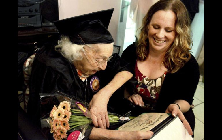 PENSILVANIA, ESTADOS UNIDOS (18/MAY/2017).- Una mujer de Pensilvania que se lamentaba de nunca haber concluido la secundaria recibió un diploma honorífico... a los 105 años.Con toga y birrete y diploma en mano en su asilo de ancianos en Oakdale, Theresia Brandl celebró el miércoles rodeada de cuatro nietos, ocho bisnietos y cinco tataranietos.Brandl fue alumna de la Escuela Secundaria Stowe pero tuvo que abandonar los estudios para poder cuidar a su madre enferma. Años después la escuela se fusionó con otra y crearon la Escuela Secundaria Sto-Rox, que fue la institución que le otorgó el diploma.La iniciativa fue obra de la Twilight Wish Foundation, que trata de cumplir los deseos de gente mayor de 65 años de edad. Una administradora del asilo de ancianos mencionó el caso de Brandl a la fundación.