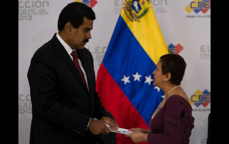Internacional | Tibisay Lucena proclama al candidato oficialista como sucesor de Hugo Chávez Nombran oficialmente a Maduro como presidente de Venezuela Tibisay Lucena proclama al candidato oficialista como sucesor del fallecido mandatario Hugo Chávez Por: EFE 15 de abril de 2013 - 15:48 hs CARACAS, VENEZUELA (15/ABR/2013).- El Consejo Nacional Electoral de Venezuela (CNE) proclamó hoy al gobernante encargado y candidato del oficialismo, Nicolás Maduro, como nuevo presidente del país y sucesor del fallecido mandatario Hugo Chávez. "Vistos los resultados anteriores (...) el Consejo Nacional Electoral procede a proclamar como presidente de la República Bolivariana de Venezuela al ciudadano Nicolás Maduro Moros", anunció la presidenta del órgano electoral, Tibisay Lucena, de pie junto al líder oficialista. Luego de su proclamación, Nicolás Maduro emite un mensaje donde recuerda a Hugo Chávez cuando fue proclamado ganador de los comicios de 2012. Maduro se impuso por siete millones 563 mil 747 votos (50.75%) en los comicios del domingo a Henrique Capriles (48.97%), indicó la presidenta del CNE, Tibisay Lucena. Con información de EFE y AFP Temas América Latina Venezuela Nicolás Maduro Elecciones en Venezuela Lee También Venezuela Cruz Azul vs. América: La Máquina remonta y se queda con el clásico joven Cruz Azul vs América • Momentos Destacados • Jornada 13 • Apertura 2025 ¿Empate entre Cruz Azul y América? Esto pronostica la IA Recibe las últimas noticias en tu e-mail Todo lo que necesitas saber para comenzar tu día Registrarse implica aceptar los Términos y Condiciones