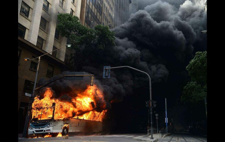 RÍO DE JANEIRO, BRASIL (01/ENE/2017).- Centenares de personas se manifestaron esta tarde frente a la Asamblea Legislativa del estado de Río de Janeiro (Alerj) en contra de los recortes previstos por el gobierno regional, en una marcha que finalizó con un autobús incendiado en el centro de la ciudad carioca.La protesta se hizo el mismo día en el que volvía la actividad laboral a la asamblea tras el receso veraniego.Los manifestantes se concentraron frente al Palacio de Tiradentes, que alberga la Alerj, lo que obligó a la policía a cortar la avenida que discurre en frente del mismo y convirtió las zonas aledañas en un campo de batalla.Se trata de la primera protesta este año en contra de los recortes que propone el gobernador, Luis Fernando Pezao, tras las realizadas en noviembre y diciembre pasado en contra de las medidas de austeridad.El pasado mes de junio, antes de organizar los Juegos Olímpicos, el gobierno de Río de Janeiro decretó el estado de "calamidad pública" en sus finanzas debido a la imposibilidad de cumplir con los compromisos económicos.Tras unos discursos en contra del que denominan 'paquete de maldad', los manifestantes derribaron las vallas que rodeaban el Palacio de Tiradentes, lo que supuso el comienzo del enfrentamiento con la policía, que atacó con gases lacrimógenos y pelotas de goma, según el diario local 'O Globo'.Con un camión blindado apostado en el lateral del edificio, la policía evitó que el conflicto se desarrollara en la puerta del mismo, con lo que las protestas se trasladaron también hacia las calles aledañas.Alrededor de dos horas después del comienzo de las protestas, un autobús fue incendiado a unos 400 metros del Palacio de Tiradentes, fuera del núcleo de la manifestación, de la que se desconocen hasta el momento si hay detenidos y heridos.