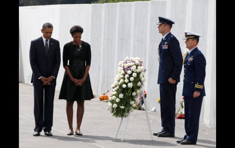 Internacional | El presidente homenajea en Pennsylvania a los fallecidos del atentado en ese estado Obama coloca ofrenda floral para víctimas del vuelo 93 El presidente homenajea en Pennsylvania a los fallecidos del atentado de 2001 en ese estado Por: AFP 11 de septiembre de 2011 - 11:07 hs Barack Obama y Michelle visitaron el monumento de mármol en memoria de los 40 muertos del vuelo 93. REUTERS / -La década que cambió al mundo -Papa llama a resistir a la tentación del odio -Recuerdan en el Pentágono aniversario de atentado -Obama llega a la Zona Cero para ceremonia por 11-S Nueva York guarda minuto de silencio por víctimas del 11-S La Casa Blanca toma muy en serio las amenazas terroristasSHANKSVILLE, ESTADOS UNIDOS (11/SEP/2011).- El presidente Barack Obama y su esposa Michelle depositaron una corona de flores blancas en el lugar donde se estrelló el avión de pasajeros secuestrado durante el 11 de septiembre en Shanksville, Pennsylvania. Los Obama se acercaron al recién inauguarado monumento de mármol en memoria de los 40 pasajeros y tripulantes del avión y colocaron una gran corona de flores blancas frente a una de las paredes de mármol pulido, en la que están inscritos los nombres de las víctimas. Luego la pareja presidencial permaneció a un lado e inclinó la cabeza en varios momentos de silenciosa contemplación. Familiares y amigos de aquellos que murieron en el vuelo 93 una década atrás regresaron el domingo al lugar de la tragedia para recordar a sus seres queridos como héroes de Estados Unidos en la guerra contra el terror. Más de dos mil personas participaron del homenaje anual en un campo de la Pennsylvania rural -que se destinó el sábado a un monumento nacional- donde se estrelló el cuarto de los aviones de pasajeros secuestrados el 11 de septiembre de 2001, a 20 minutos de haber partido de Washington. "Perdimos demasiado hace 10 años. La angustia del 11 de septiembre continúa afectando", dijo Gordon Felt, presidente de la fundación Families of the Flight 93 (Familias del Vuelo 93), ante los manifestantes presentes antes del arribo al lugar del presidente Obama. "Nunca debemos olvidar el horror del 11/9", agregó Felt, quien perdió a su hermano Edward Porter Felt, de 41 años, un ingeniero en computación, en el vuelo de United Airlines tomado por cuatro secuestradores de Al Qaida. El sol se asomó por detrás de las nubes y una suave brisa soplaba sobre las colinas cuando familiares de las víctimas se turnaron para leer los nombres de los fallecidos, cada uno seguido por una campanada. La seguridad era estricta en el lugar pero no abrumadora, mientras que la Administración Federal de Aviación había declarado zona de exclusión aérea el cielo de Shanksville hasta 18 mil pies durante la mayor parte del domingo. En un discurso más temprano, el gobernador de Pennsylvania, Tom Corbett, dio la nota patriótica. "Los pasajeros del vuelo 93 marcaron un nuevo rumbo, un nuevo estándar para el valor estadounidense", dijo. "Su levantamiento fue el momento histórico en que los estadounidenses demostraron lo que nos hace diferentes: sabemos que hay cosas más importantes que nuestras propias vidas... La principal de ellas, la libertad", dijo. Tras los homenajes, estaba previsto que Obama y su esposa se dirigieran a Washington y al Pentágono para homenajear a los fallecidos por el atentado realizado con otro avión secuestrado que se estrelló en la sede militar de Estados Unidos. Temas Norte América Estados Unidos 11 de Septiembre Barack Obama Lee También Revelan llamada al 911 con que se reportó la muerte de Diane Keaton SMN advierte lluvias y bajas temperaturas en México esta semana Organismo internacional prevé tensión comercial a nivel global en 2026 Raymond toca tierra como ciclón post-tropical Recibe las últimas noticias en tu e-mail Todo lo que necesitas saber para comenzar tu día Registrarse implica aceptar los Términos y Condiciones