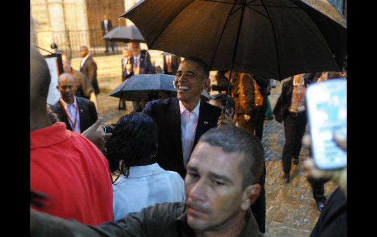 Internacional | El primer día en la isla lo dedica a pasear por el antiguo de La Habana Obama comparte en Facebook fotos de su visita a Cuba Otra de las fotos muestran a Obama sosteniendo un paraguas durante el fuerte aguacero caído el domingo en la capital cubana Por: EFE 21 de marzo de 2016 - 10:22 hs LA HABANA, CUBA (21/MAR/2016).- El presidente de EU, Barack Obama, compartió en su perfil de Facebook varias fotos de su primer día de visita a Cuba, que dedicó fundamentalmente a pasear por el casco antiguo de La Habana y cerró con una cena en familia. Las fotos publicadas sobre cómo pasó la familia presidencial el domingo en Cuba incluyen una de su llegada al aeropuerto internacional José Martí y en ella se ve a Obama, su esposa, Michelle, y sus dos hijas, a los pies del Air Force One. Otra de las fotos muestra a Obama sosteniendo un paraguas durante el fuerte aguacero caído el domingo en la capital cubana mientras saluda sonriente a varias mujeres en una de las calles de La Habana vieja. En la siguiente imagen aparecen Obama y su asesor adjunto de seguridad nacional, Ben Rhodes, dialogando con el cardenal cubano y arzobispo de La Habana, Jaime Ortega, durante su visita a la catedral. La última foto muestra el lado más desenfadado de Obama, quien aparece riéndose junto a su hija mayor, Malia, en el paladar (restaurante privado) "San Cristóbal", situado en Centro Habana y donde la familia presidencial cenó el domingo. Las fotos van acompañadas de un pequeño texto de Obama que empieza con un saludo en español: "¡Hola desde Cuba!" "Estoy aquí para enterrar el último vestigio de la Guerra Fría en las Américas y forjar una nueva era de entendimiento que nos ayude a mejorar el día a día de los cubanos", afirma Obama en el mensaje. Según el presidente, sigue habiendo diferencias "importantes y reales" entre su Gobierno y el cubano, fundamentalmente sobre "cómo promover" las oportunidades y los derechos humanos, pero también hay muchas cosas compartidas, entre ellas "el amor por el béisbol". "Confío en que, trabajando junto al pueblo cubano, nuestros dos países pueden empezar un nuevo viaje juntos que genere progreso para nuestros dos pueblos", concluye. Obama es el primer presidente estadounidense en ejercicio que pisa suelo cubano en casi 90 años. El mandatario llegó este domingo a La Habana acompañado de toda su familia y este lunes fue recibido en el Palacio de la Revolución por el mandatario cubano, Raúl Castro. Temas América Latina Estados Unidos Cuba Barack Obama Relación Cuba-EU Lee También Revelan llamada al 911 con que se reportó la muerte de Diane Keaton SMN advierte lluvias y bajas temperaturas en México esta semana Organismo internacional prevé tensión comercial a nivel global en 2026 Raymond toca tierra como ciclón post-tropical Recibe las últimas noticias en tu e-mail Todo lo que necesitas saber para comenzar tu día Registrarse implica aceptar los Términos y Condiciones