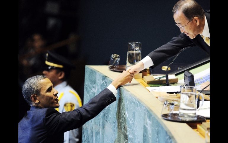 Internacional | El mandatario reitera su apoyo al establecimiento de un Estado palestino Obama condiciona paz en Medio Oriente a un trato entre Israel y Palestina Al hablar en la Asamblea de la ONU, el mandatario reitera su apoyo al establecimiento de un Estado palestino Por: EFE 21 de septiembre de 2011 - 09:08 hs NUEVA YORK, ESTADOS UNIDOS (21/SEP/2011).- El presidente de Estados Unidos, Barack Obama, afirmó que en Medio Oriente "la paz no vendrá de resoluciones y declaraciones en la ONU", sino de las negociaciones directas entre israelíes y palestinos. Obama habló ante la 66 Asamblea General de la ONU, en la que el presidente palestino, Mahmud Abás, planea plantear al Consejo de Seguridad que Palestina sea admitida como Estado miembro de la organización internacional, lo que Estados Unidos e Israel rechazan. En su discurso, el presidente estadounidense dedicó especial atención al conflicto israelo-palestino e insistió en que la solución al problema no llegará a través del reconocimiento de Palestina en la ONU, sino mediante las conversaciones directas entre las dos partes. "No hay atajos para llegar al final de un conflicto que se ha prolongado décadas", señaló Obama. "Al final, son los israelíes y los palestinos, no nosotros, los que deben llegar a un acuerdo en los asuntos que les dividen: las fronteras y la seguridad, los refugiados y Jerusalén", agregó el presidente. Estados Unidos, reiteró, apoya el establecimiento de un Estado palestino, "una visión retrasada durante demasiado tiempo", pero el éxito sólo llegará "si podemos instar a las partes a sentarse juntas, a escucharse y entender las esperanzas y miedos mutuos". Las dos partes, indicó, tienen "aspiraciones legítimas". Si los palestinos reclaman su Estado, Israel exige seguridad. "Los amigos de los palestinos no les hacen ningún favor haciendo caso omiso a esta verdad, al igual que los amigos de Israel deben reconocer la necesidad de lograr una solución de dos Estados con un Israel seguro junto a una Palestina independiente", señaló. Obama tiene previsto reunirse inmediatamente después de su discurso con el primer ministro israelí, Benjamin Netanyahu, y posteriormente con Abás, para tratar de evitar una crisis en Naciones Unidas y persuadir a las partes para que reanuden las negociaciones directas. Washington considera que el recurso a la ONU es contraproducente, puede crear más violencia y no servirá para hacer avanzar la meta de dos Estados independientes que convivan en paz. Alega que la única vía de lograr un verdadero Estado palestino independiente es a través de conversaciones directas con Israel. Esas conversaciones se encuentran abandonadas desde hace un año, cuando expiró la moratoria israelí a la construcción de nuevas viviendas en los asentamientos en Cisjordania. Abás asegura que la única manera de restablecer las negociaciones es con el respaldo que recibiría del reconocimiento del Estado palestino en la ONU. Al tiempo que Obama se reúne con los líderes israelí y palestino, el resto de los miembros del Cuarteto mediador en Oriente Medio (Estados Unidos, Rusia, la UE y la ONU) tratan también de consensuar, hasta el momento sin resultado, una declaración que permita relanzar las negociaciones directas y evitar el punto muerto en Naciones Unidas. Temas Norte América Conflicto Israel-Palestina Estados Unidos Barack Obama Lee También Cifras de fallecidos en las explosiones en Kabul antes del alto al fuego con Pakistán ¿Tormenta "Sonia" afectará a Jalisco en los próximos días? EU afirma que el desenlace de la guerra en Ucrania recaerá en Trump Ebrard buscará evitar imposición de aranceles en su visita a EU Recibe las últimas noticias en tu e-mail Todo lo que necesitas saber para comenzar tu día Registrarse implica aceptar los Términos y Condiciones