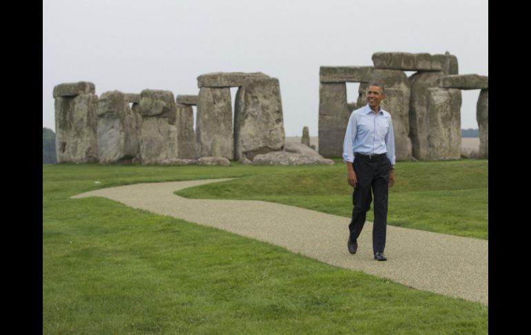 Internacional | Estuvo acompañado por una guía y vigilado por su equipo de seguridad Obama finaliza cumbre de OTAN con visita a Stonehenge Estuvo acompañado por una guía y vigilado por su equipo de seguridad Por: SUN 5 de septiembre de 2014 - 15:32 hs Barack Obama sale de la zona arqueológica del Stonehenge. AFP / NEWPORT, GALES (05/SEP/2014).- Tras participar en la cumbre de la OTAN en Newport, Gales, el presidente Barack Obama dejó atrás el saco y las formalidades para visitar el monumento megalítico de Stonehenge, en Inglaterra. El mandatario estuvo acompañado por la guía Heather Sebire, según recoge el diario español El Mundo, y vigilado desde el perímetro del complejo por su equipo de seguridad. También se reunió y conversó con una familia en un campo de los alrededores. El mandatario se sintió impresionado por los grandes bloques de piedra que conforman el lugar arqueológico. "Es espectacular, una cosa menos pendiente", dijo el mandatario. SABER MÁS El monumento prehistórico de Stonehenge, fue declarado patrimonio de la humanidad por la Unesco en 1986, es un semicírculo, y los arqueólogos nuca han podido confirmar si fue un círculo perfecto. Temas Europa Inglaterra Barack Obama OTAN Stonehenge Lee También Estrategia contra los aranceles Gobierno palestino lamenta ataque "terrorista" a sinagoga en Reino Unido Tres muertos tras ataque a una sinagoga en Inglaterra Trabajadores de país europeo se irán a huelga contra jornada laboral de 13 horas Recibe las últimas noticias en tu e-mail Todo lo que necesitas saber para comenzar tu día Registrarse implica aceptar los Términos y Condiciones