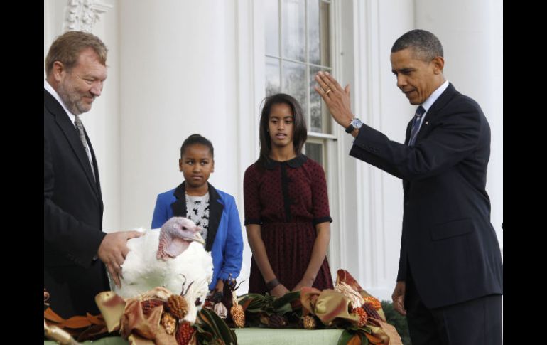 Internacional | El presidente de EU bromea con el Congreso sobre la 'necesidad' de aprobación previa Obama indulta a dos pavos por Acción de Gracias; uno escapa Obama bromeó con que los pavos, habían recibido formación mediática para soportar los flashes de las cámaras fotográficas Por: AFP 23 de noviembre de 2011 - 11:43 hs WASHINGTON, ESTADOS UNIDOS (23/NOV/2011).- El presidente de Estados Unidos, Barack Obama, cumplió el ritual previo al día de Acción de Gracias y concedió este miércoles en la Casa Blanca el indulto presidencial a dos pavos y uno de ellos se escapó en plena ceremonia. Con Peace (Paz) ausente, Obama ofició la tradicional ceremonia del indulto con el otro pavo, de nombre Liberty (Libertad), acompañado por sus dos hijas, Malia y Sasha. El presidente de EU se dio tiempo para bromear sobre que esta es una decisión que no necesita la aprobación del Congreso. "Algunos de ustedes saben que hace poco he estado tomando una serie de medidas que no requieren la aprobación del Congreso", dijo Obama, refiriéndose a la batalla que lo enfrenta a los republicanos desde septiembre, de presencia mayoritaria en la Cámara de Representantes, sobre un paquete de estímulo del empleo. "Aquí hay otra. No podemos esperar a perdonar estos pavos", dijo utilizando el eslogan de su campaña para convencer a sus compañeros de los méritos de su plan de 447 millones de dólares. "De lo contrario, terminarían rellenos junto al puré de patatas", acotó. Obama siguió luego la costumbre presidencial iniciada por John Kennedy de "perdonar" a un pavo o dos en la víspera de Acción de Gracias, una de las fiestas más tradicionales del país, en la que la comida típica es el pavo relleno. "Yo te concedo la gracia", dijo Obama levantando la mano sobre un pavo blanco de nombre "Liberty" (Libertad) y 20,5 kilos de peso que, junto a otro de nombre Peace (Paz), terminará sus días en la finca de George Washington en Mount Vernon, Virginia (este). Obama bromeó con que los pavos, indultados en el Pórtico Norte de la Casa Blanca, habían recibido formación mediática para soportar los flashes de las cámaras fotográficas. "También aprendieron algo importante para aparecer en los medios de comunicación: cacarear sin realmente decir nada", se rió el presidente. Ya en una faceta más seria, Obama instó a los ciudadanos de Estados Unidos a dar gracias por el festín del jueves y a recordar a los que están en peores condiciones. "Apreciemos a los que tienen un lugar especial en nuestras vidas y asegurémonos de que ellos lo saben", dijo Obama, flanqueado por sus hijas Malia, de 13 años, y Sasha, de 10. Temas Norte América Estados Unidos Barack Obama Día de acción de gracias Recibe las últimas noticias en tu e-mail Todo lo que necesitas saber para comenzar tu día Registrarse implica aceptar los Términos y Condiciones